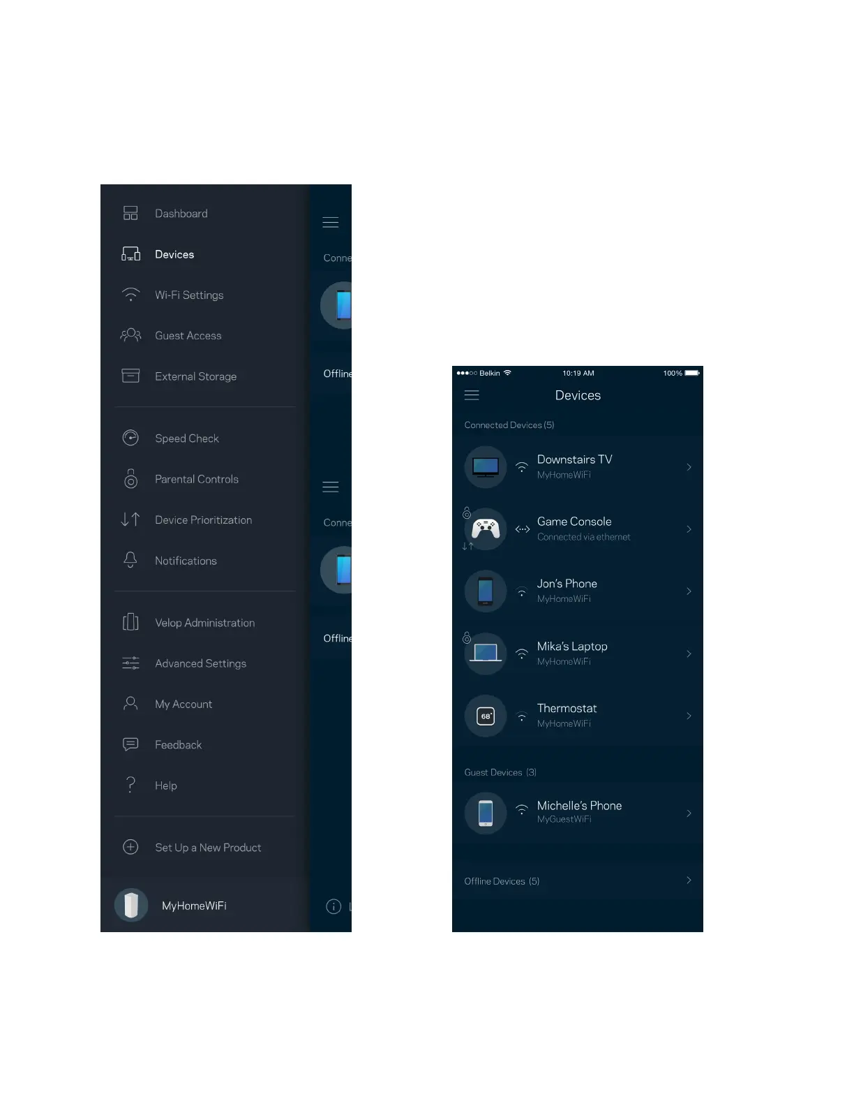 Peržiūrėkite ir keiskite visų prie „Wi-Fi“ prijungtų įrenginių informaciją. Galite peiūrėti pagrindiniame