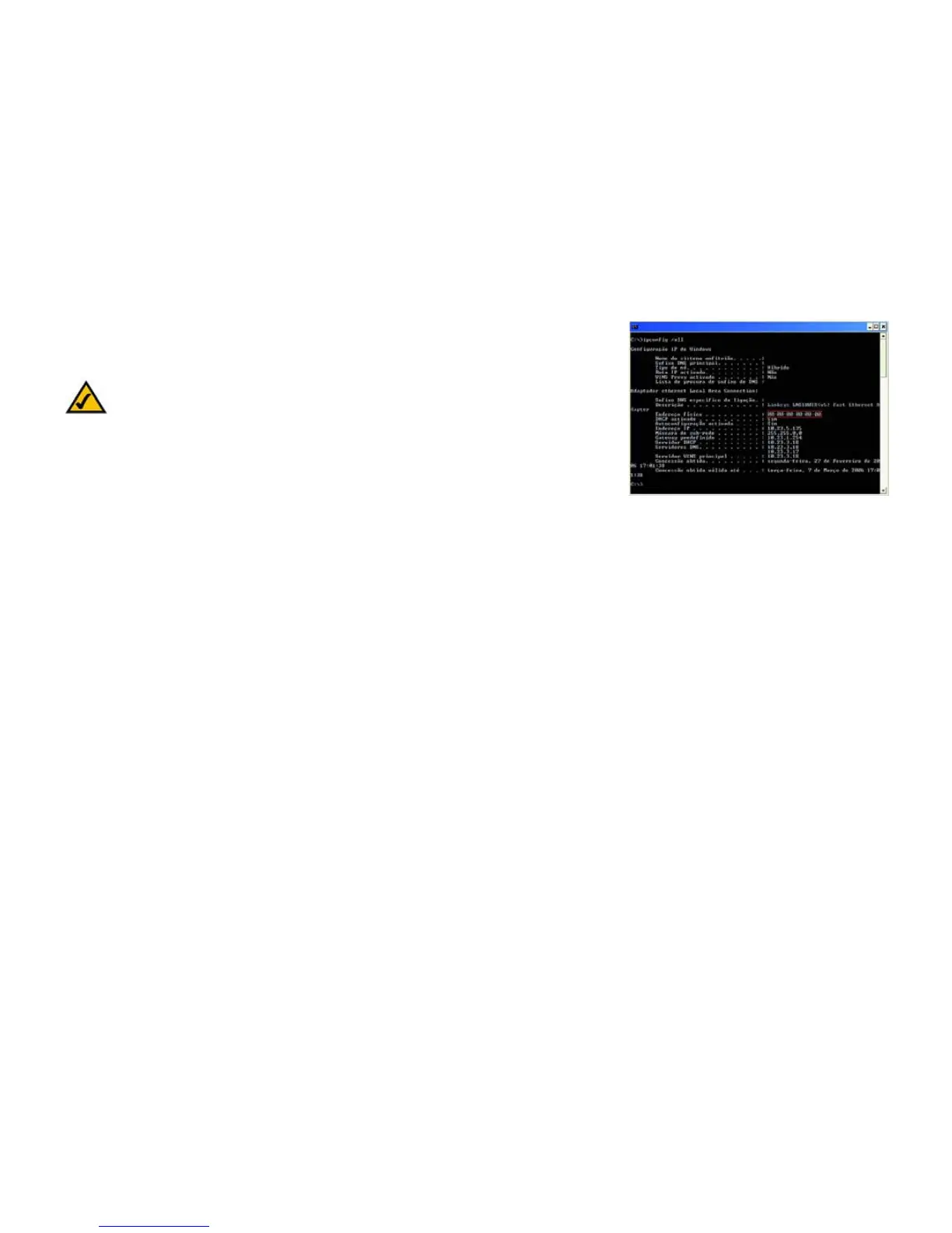 endereço MAC da placa Ethernet sob a forma 00-00-00-00-00-00. O seu computador mostrará algo diferente.
