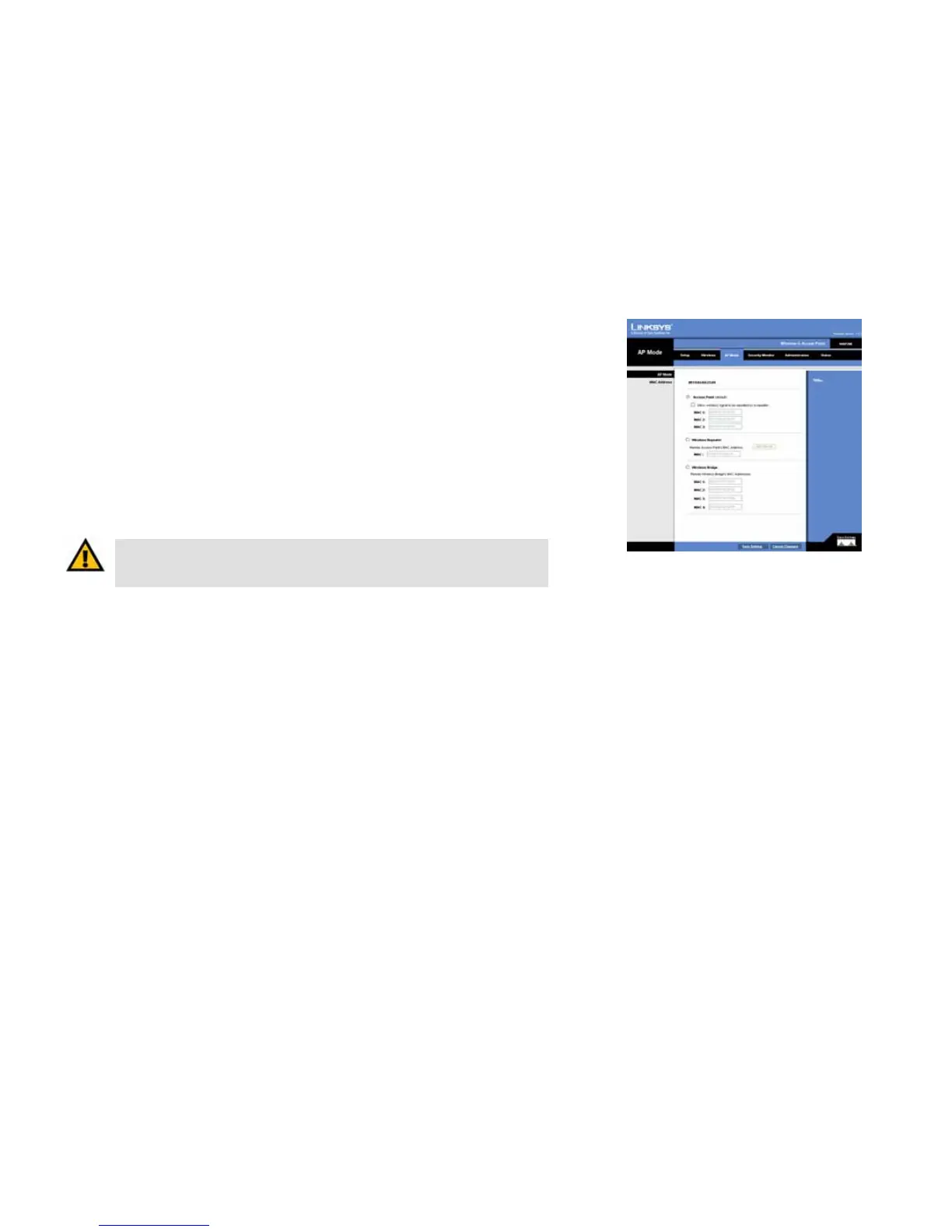 the Access Point’s mode of operation if you want to use the Access Point as a wireless bridge; for example, you