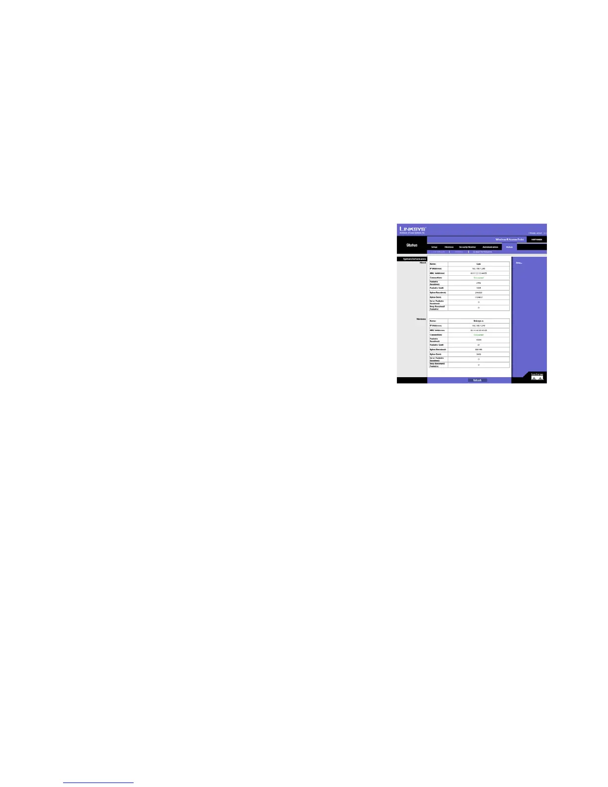 The System Performance screen displays the Access Point’s status information for its current settings and data