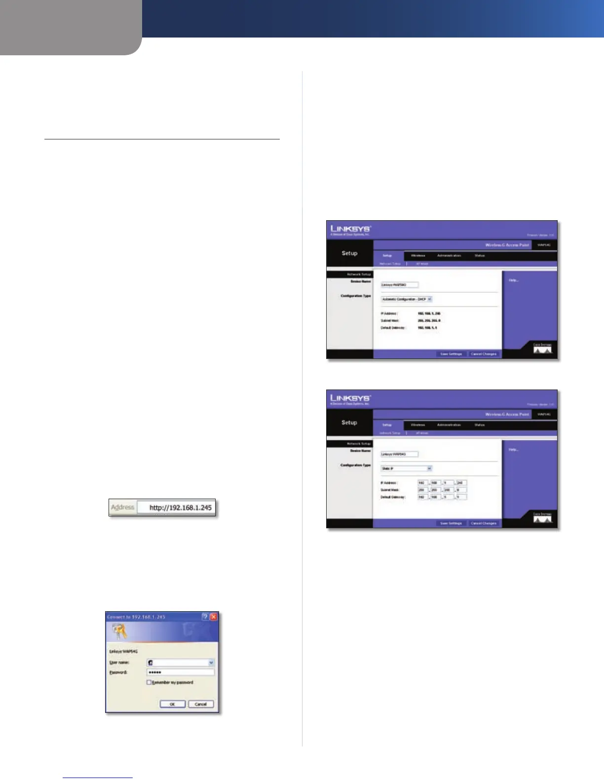 Point’s default IP address, 192.168.1.245, or the IP address