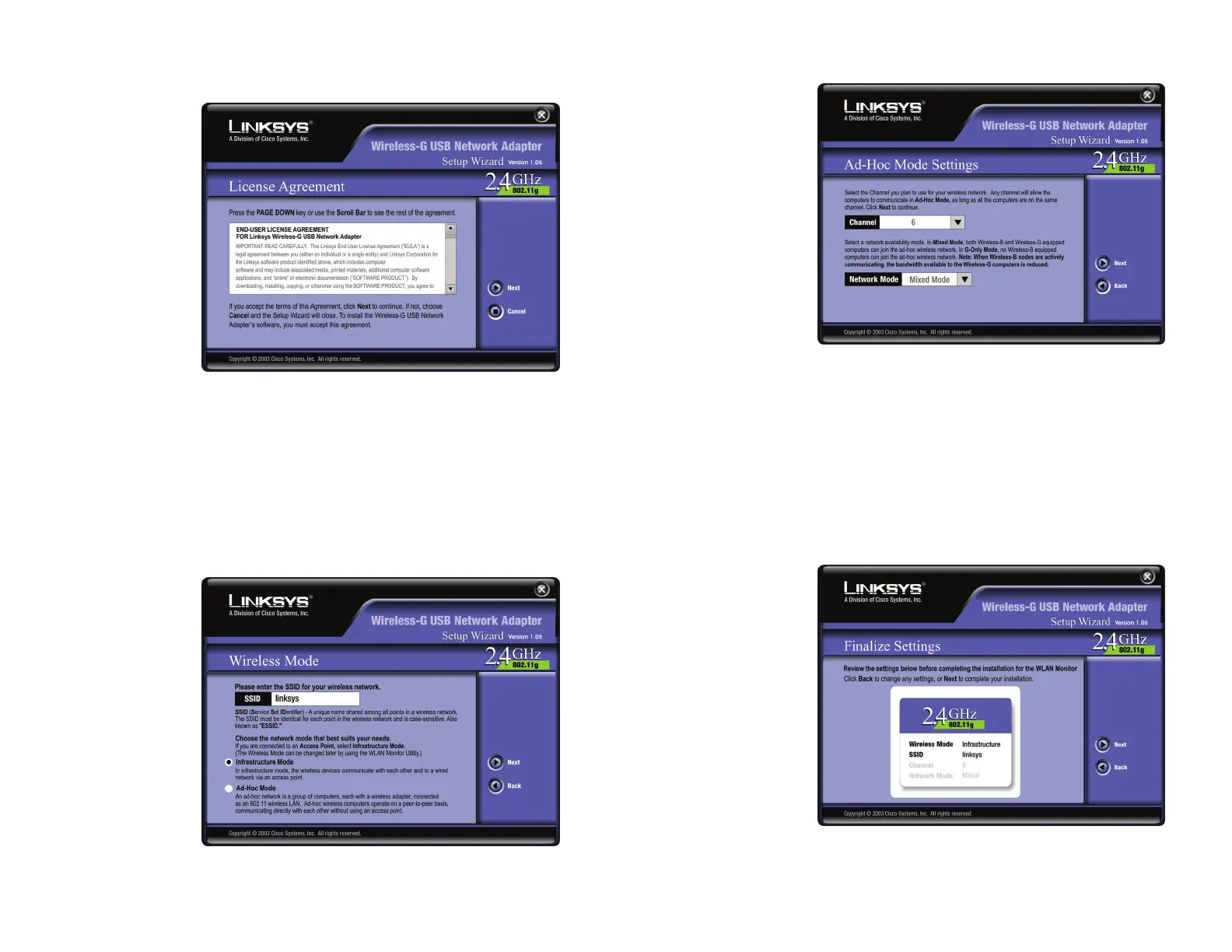 wired network using a wireless access point. Click the Ad-Hoc Mode radio