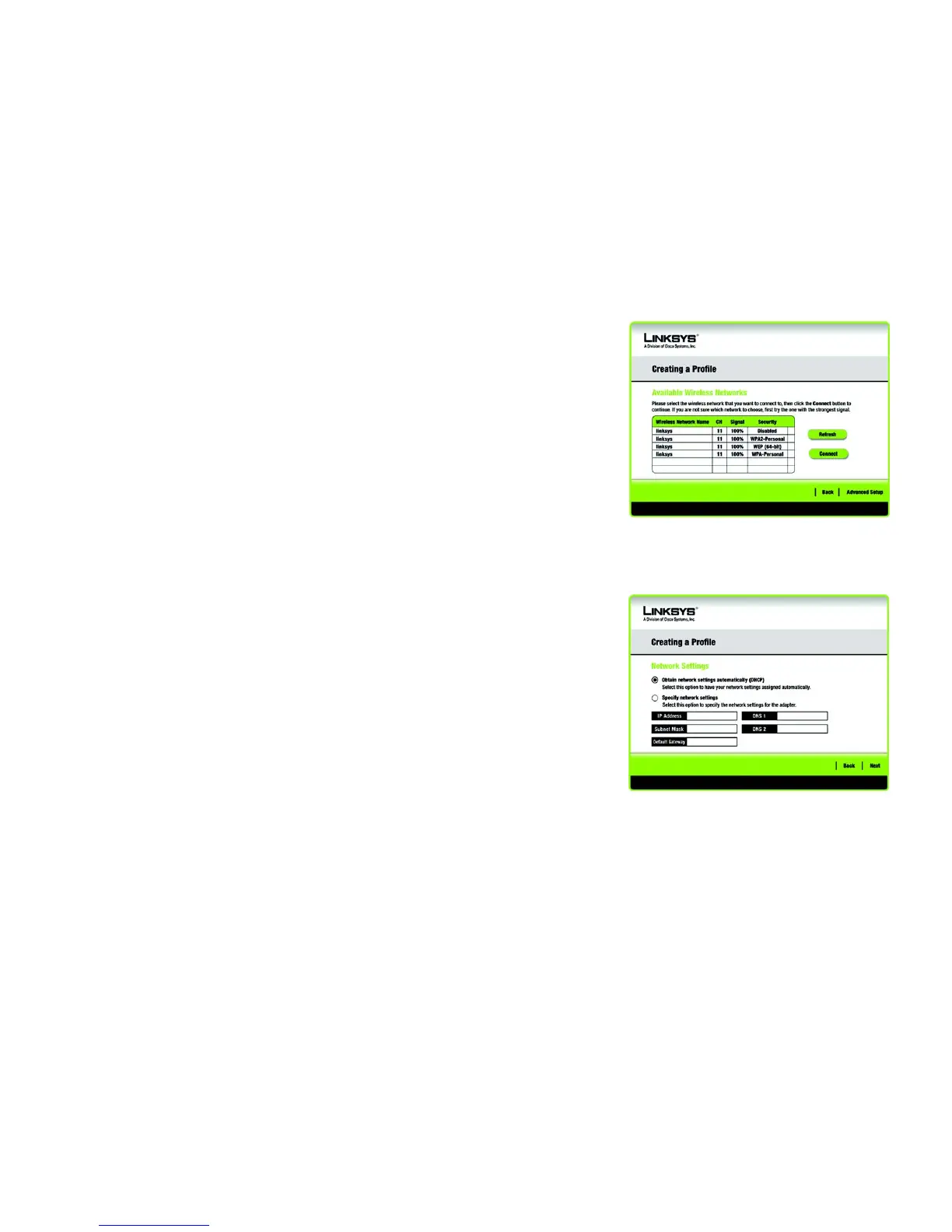 1. Click Advanced Setup on the Available Wireless Network screen to set up the Adapter manually.