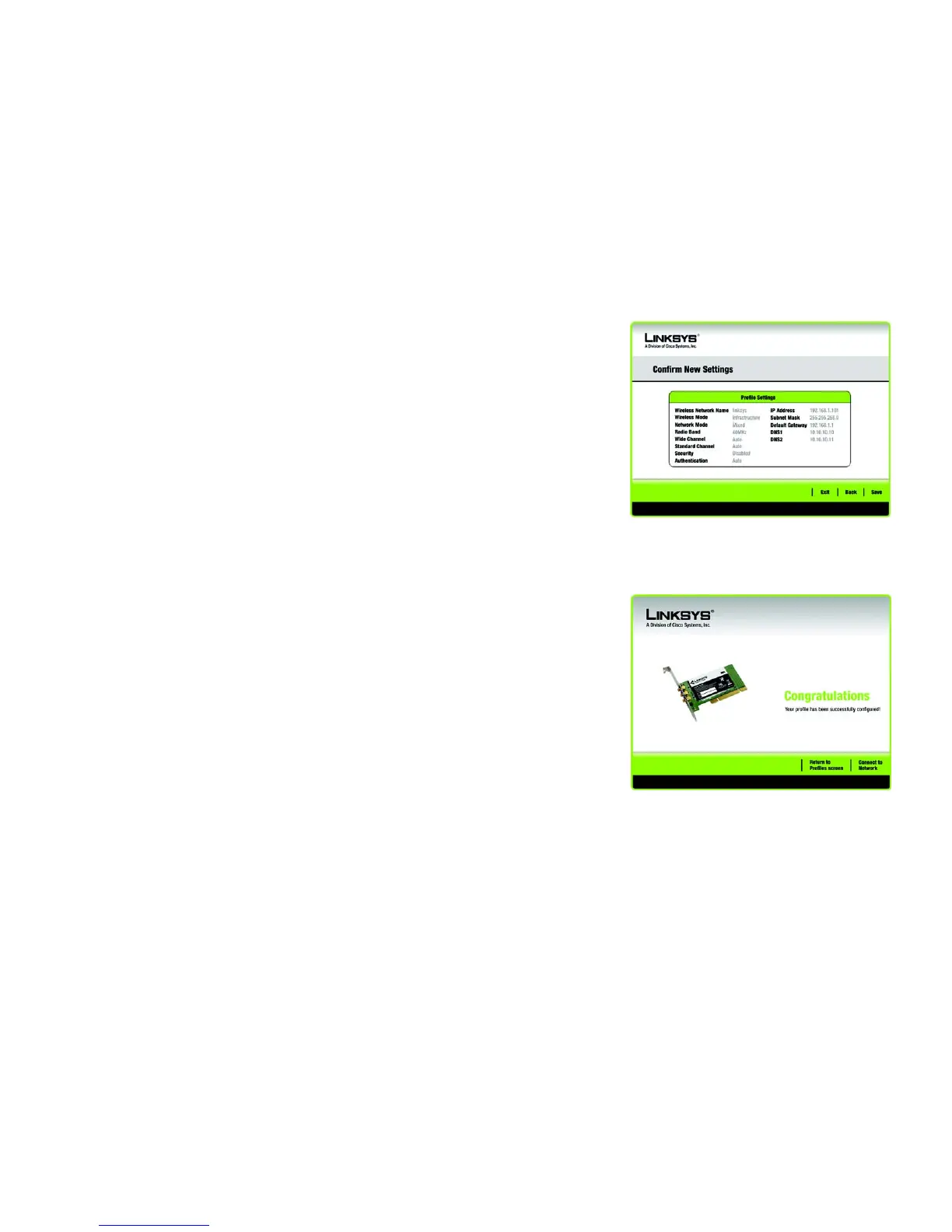 return to the Link Information screen. Click Return to Profiles to return to the Profiles screen.