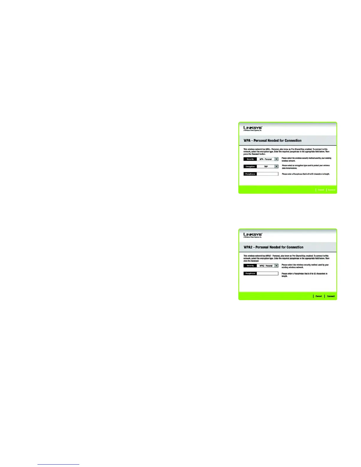 Needed for Connection screen. Enter the network’s Passphrase or pre-shared key in the Passphrase field. Then