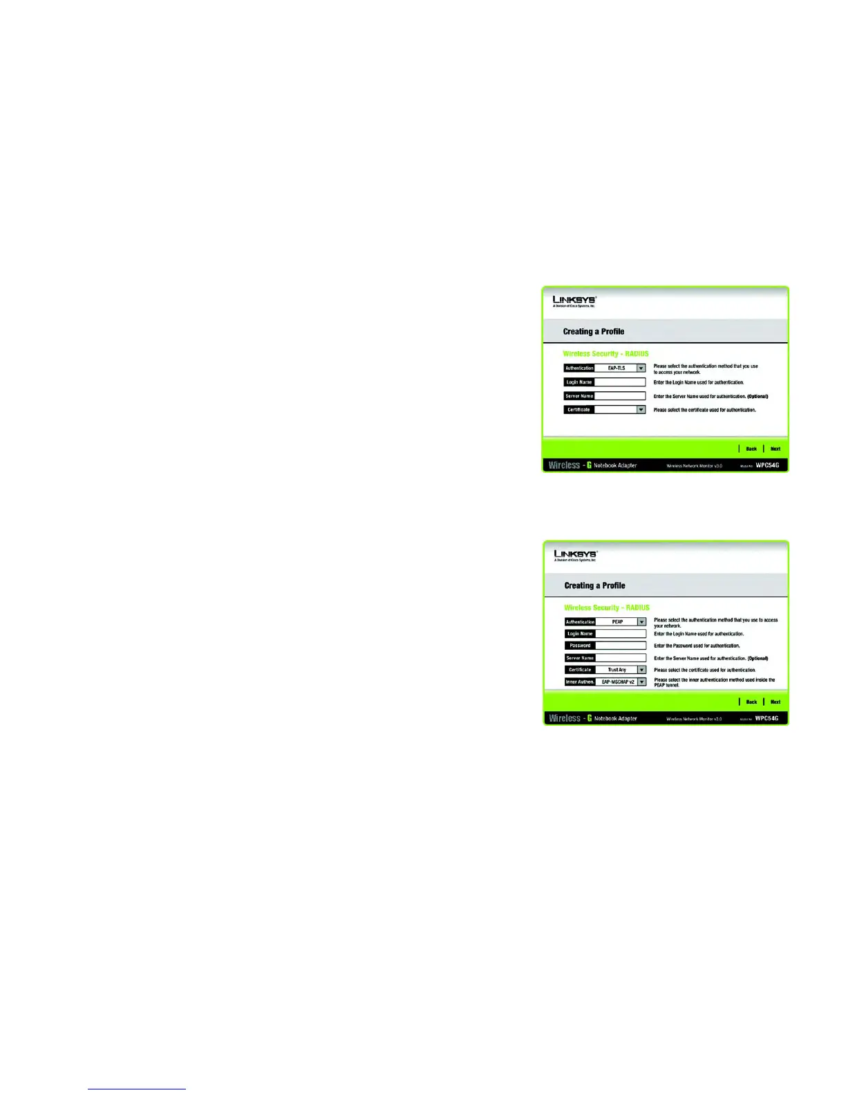 password of your wireless network in the Password field. Enter the name of the authentication server in the