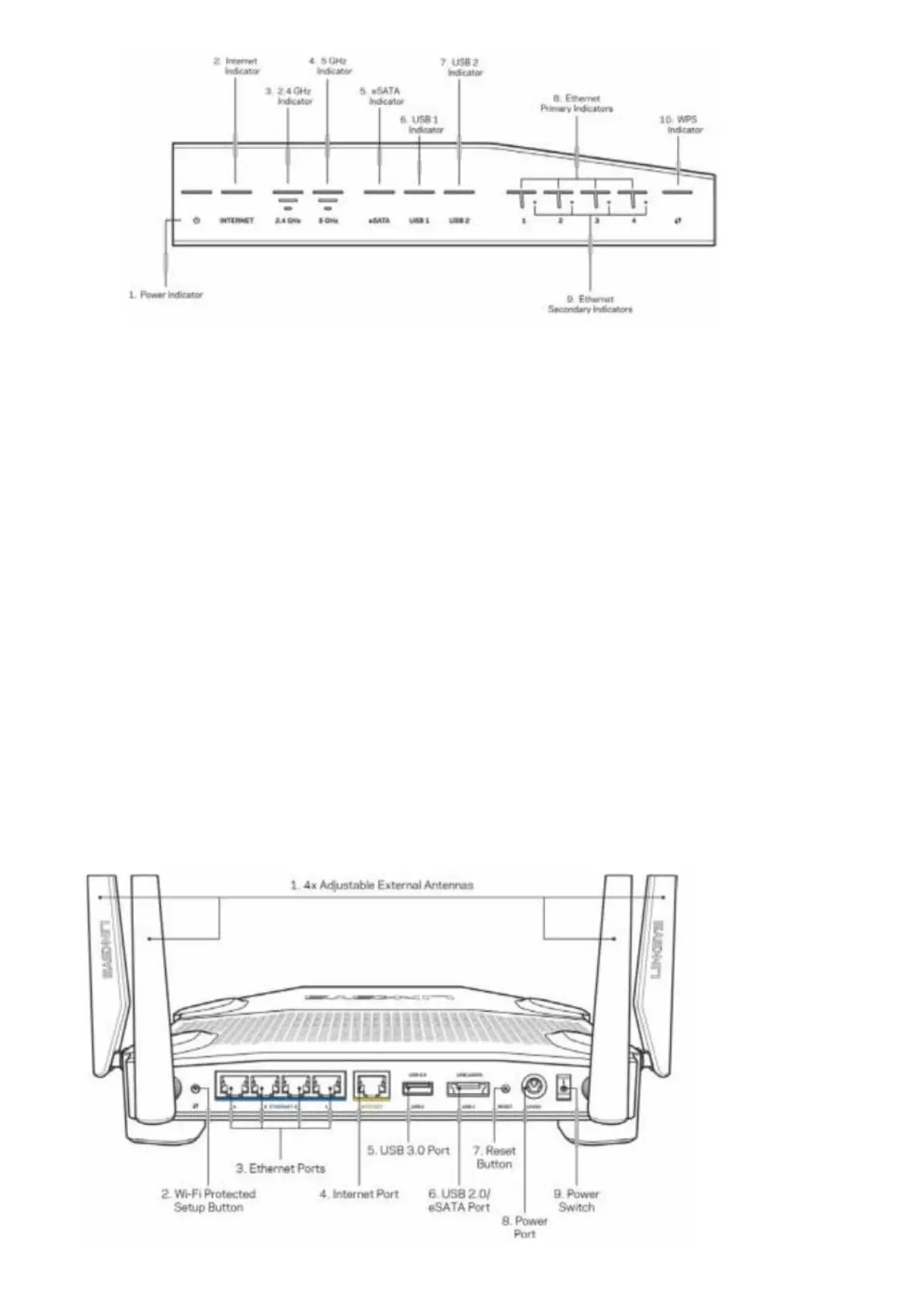 WPS Indicator (10)—The light blinks slowly for up to two minutes during Wi-Fi Protected Setup. It will be solid blue