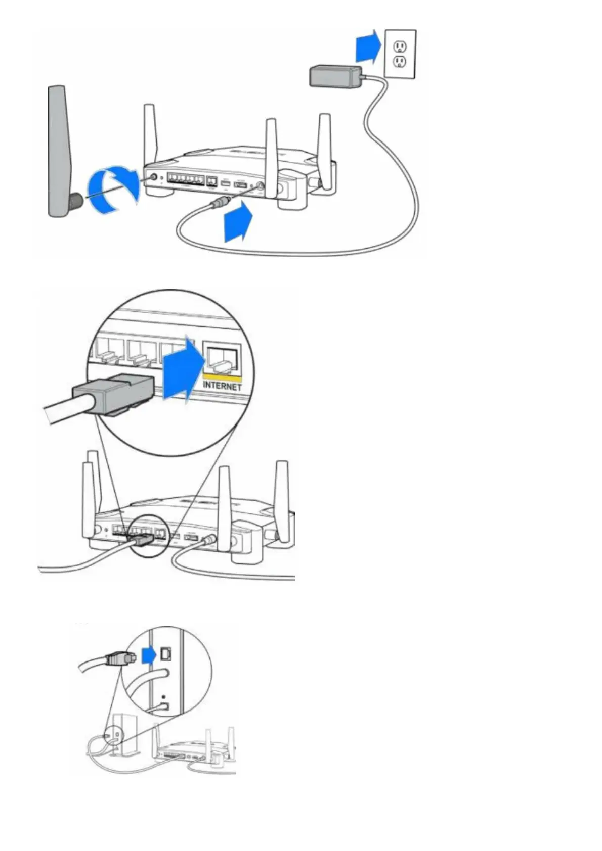 3. Plug one end of the included internet cable into the yellow INTERNET port on your new router.