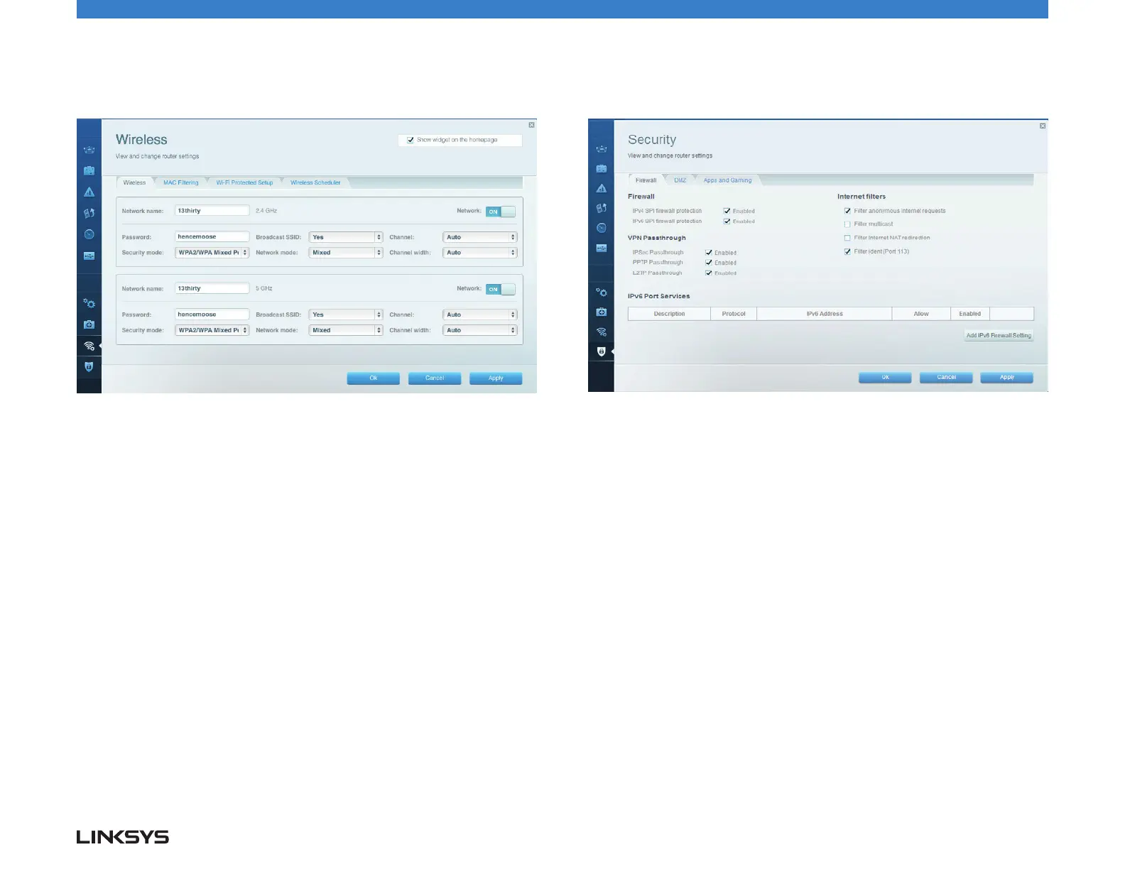 Wireless — Lets you configure your router’s wireless network. You can change