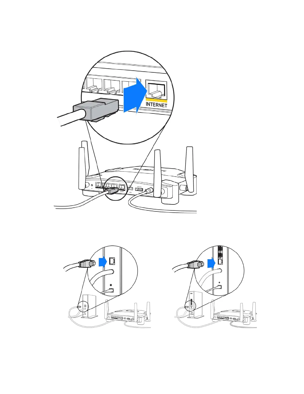 3. Colokkan salah satu ujung kabel internet yang disertakan ke port INTERNET berwarna