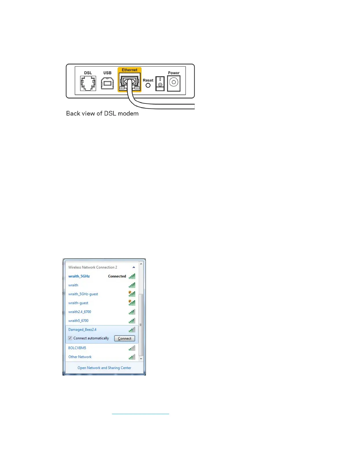 Hvis Internett-tjenesten er DSL, må du sørge for at DSL-linjen er koblet til modemets DSL-