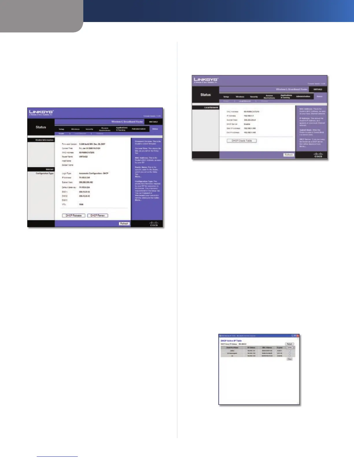DHCP Server The status of the Router’s DHCP server