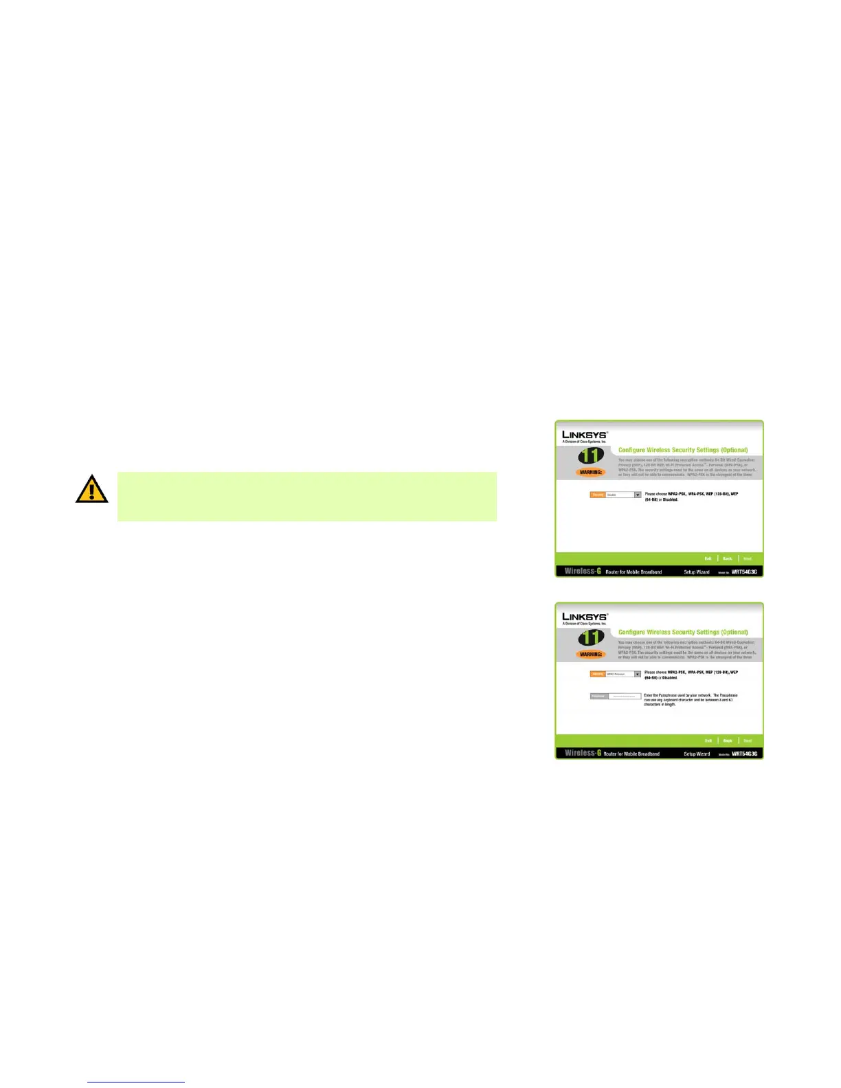 IMPORTANT: Linksys strongly recommends that you enable wireless security on your