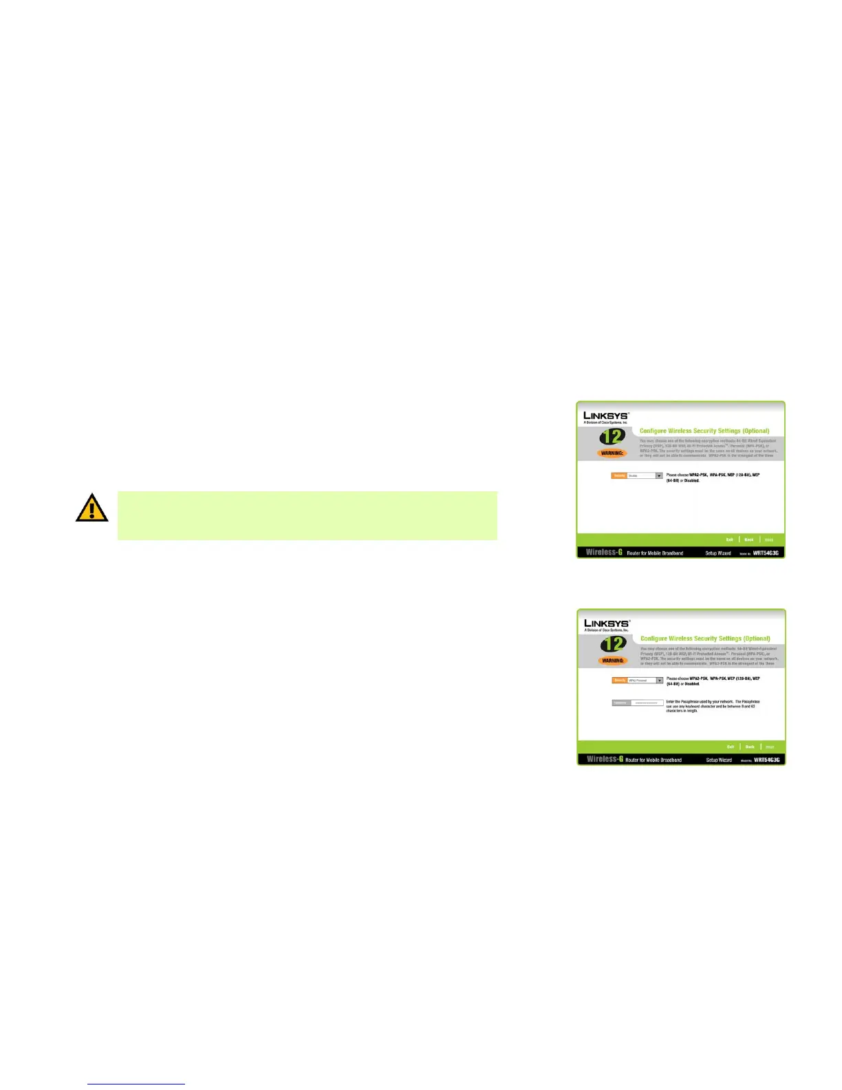 IMPORTANT: Linksys strongly recommends that you enable wireless security on your