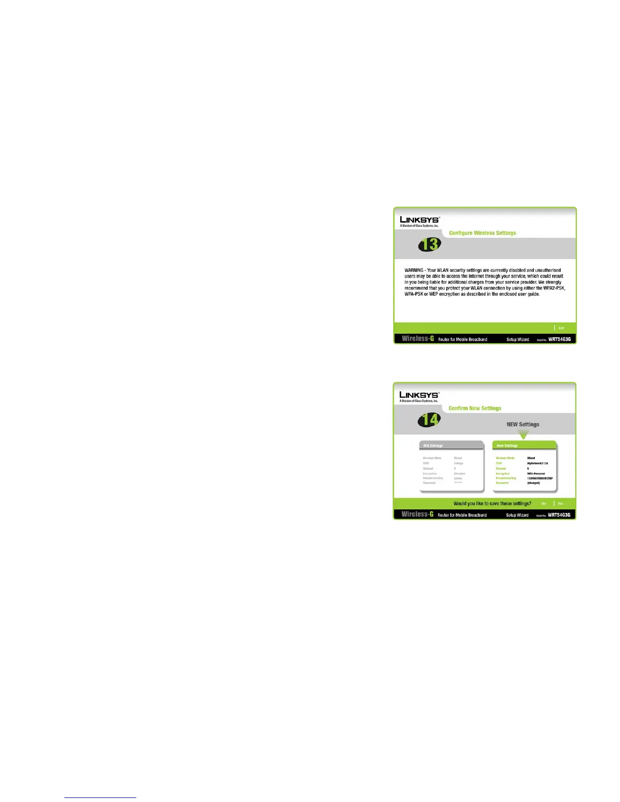 17. If you do not use any wireless security method, you will see a warning message that recommends that you