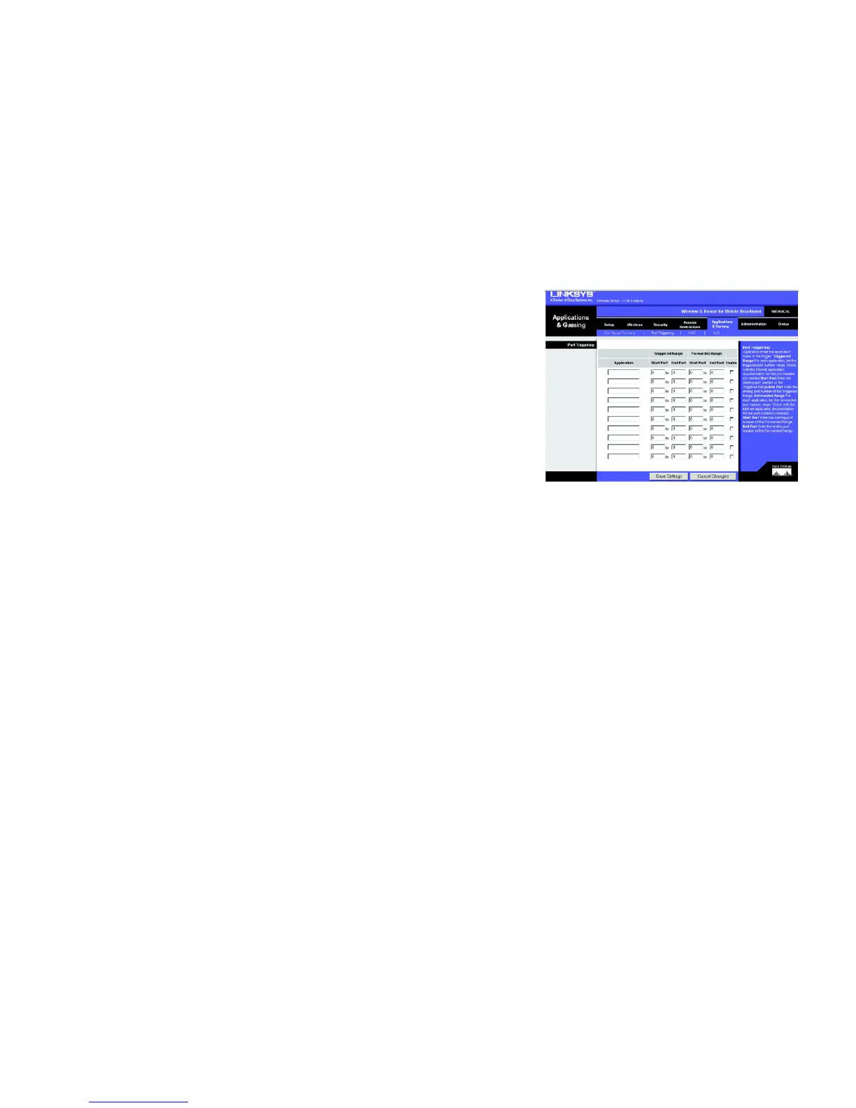 The Port Triggering screen allows the Router to watch outgoing data for specific port numbers. The IP address of