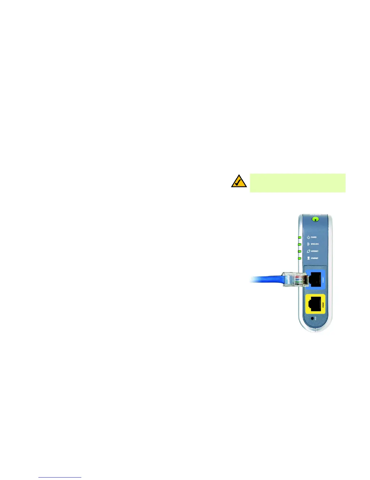 2. Connect a standard Ethernet network cable from the Router’s Internet port to your Internet connection.