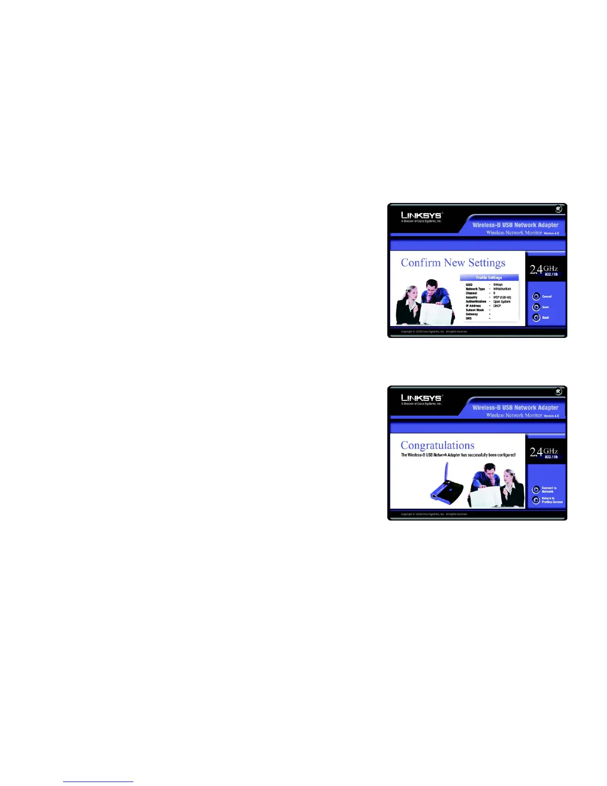 8. The Congratulations screen will appear next. Click Connect to Network to implement the new settings