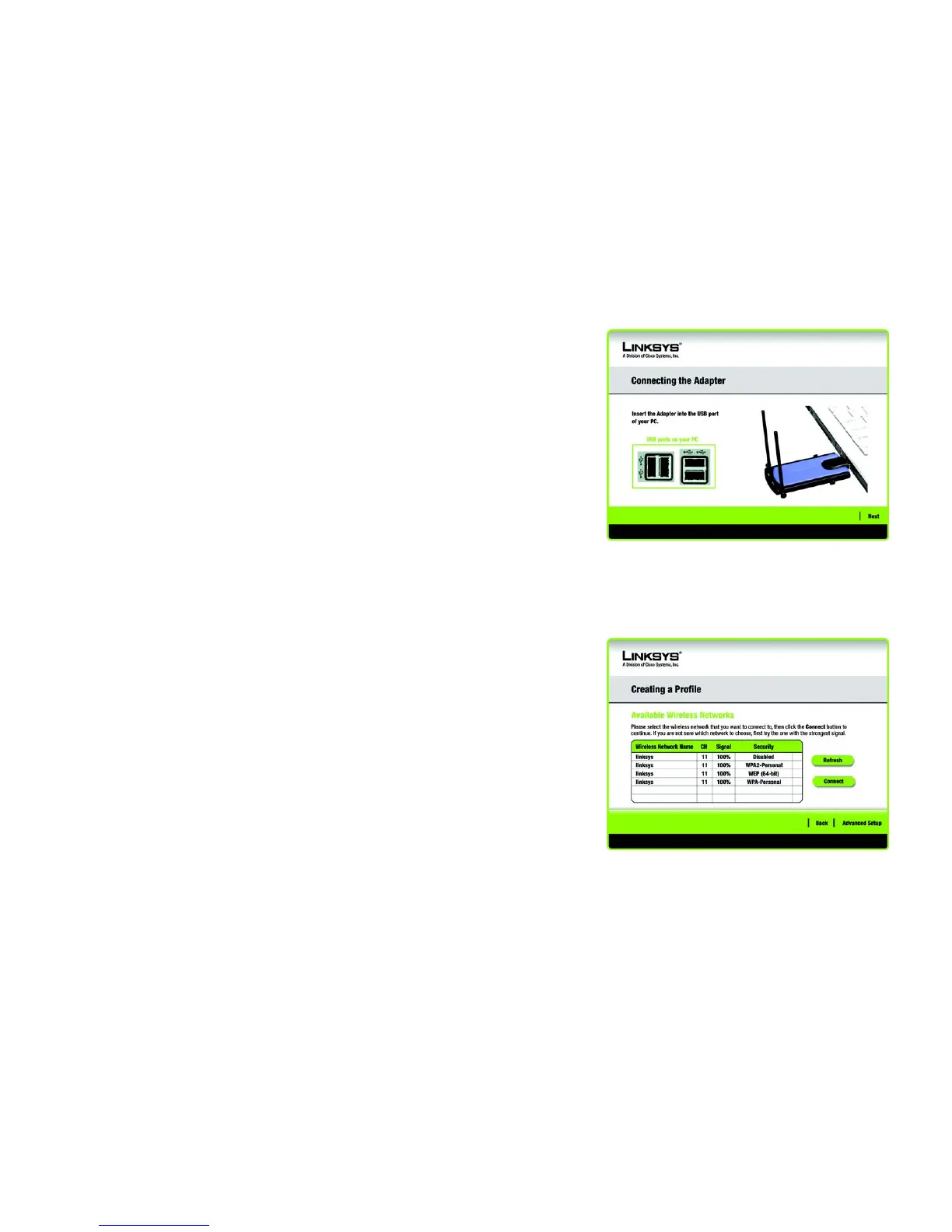 • Manual Setup. If your network is not listed on this screen, select Advanced Setup to set up the adapter
