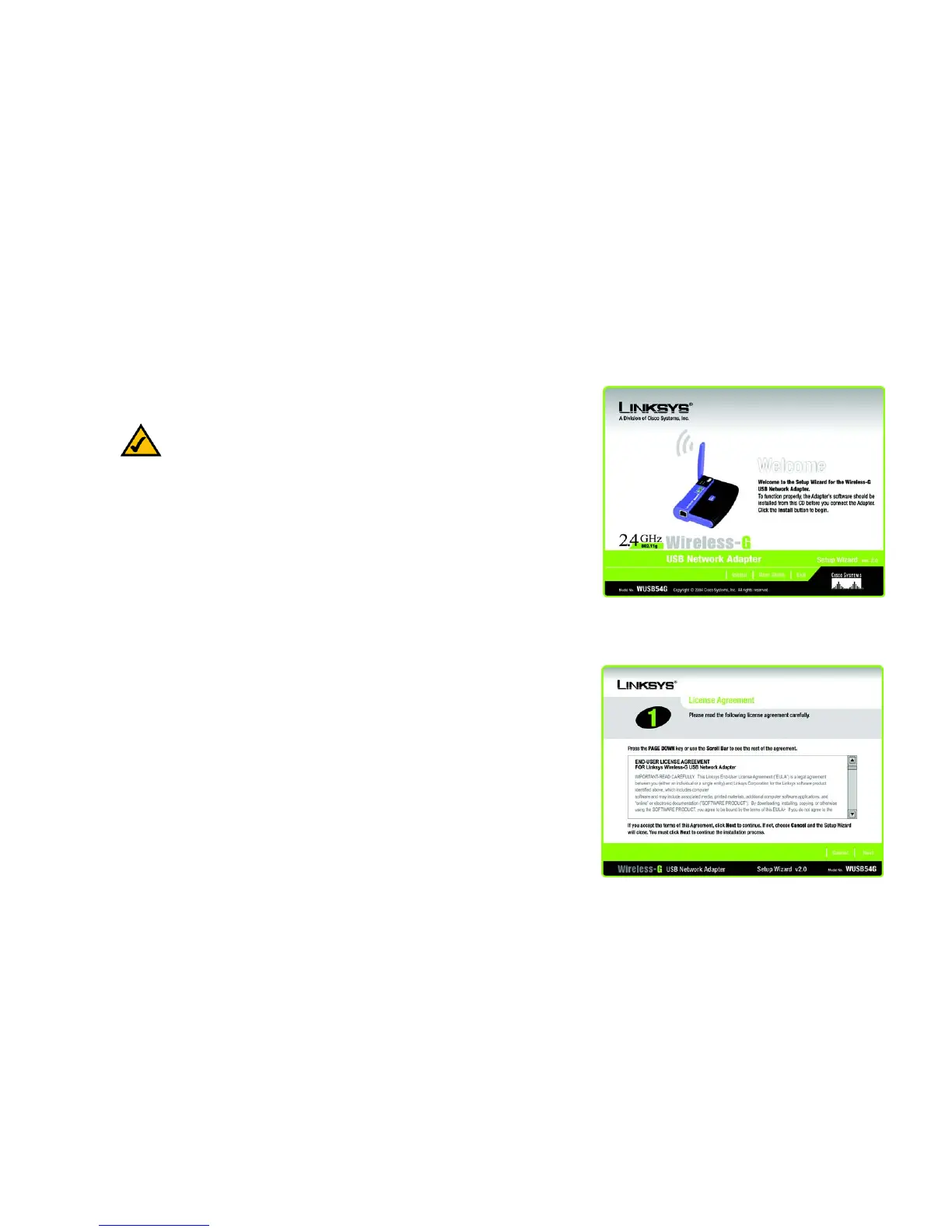 The Wireless-G USB Network Adapter Setup Wizard will guide you through the installation procedure. The Setup