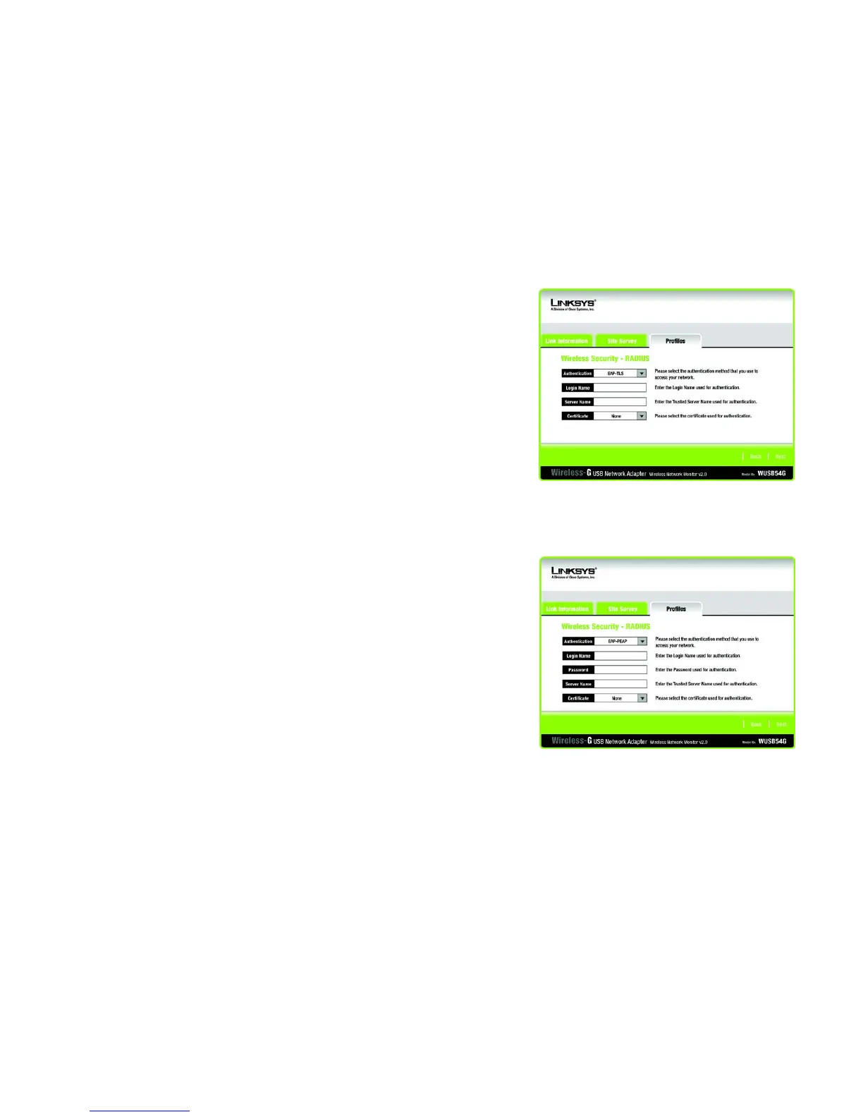 password of your wireless network in the Password field. Enter the name of the authentication server in the