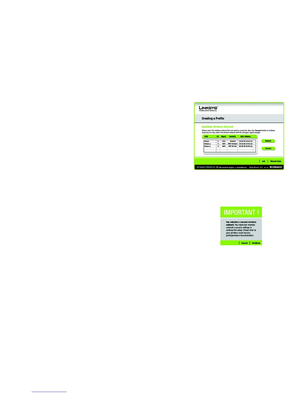 Click Continue and the appropriate connection screen will appear. If your network utilizes WEP (Wired