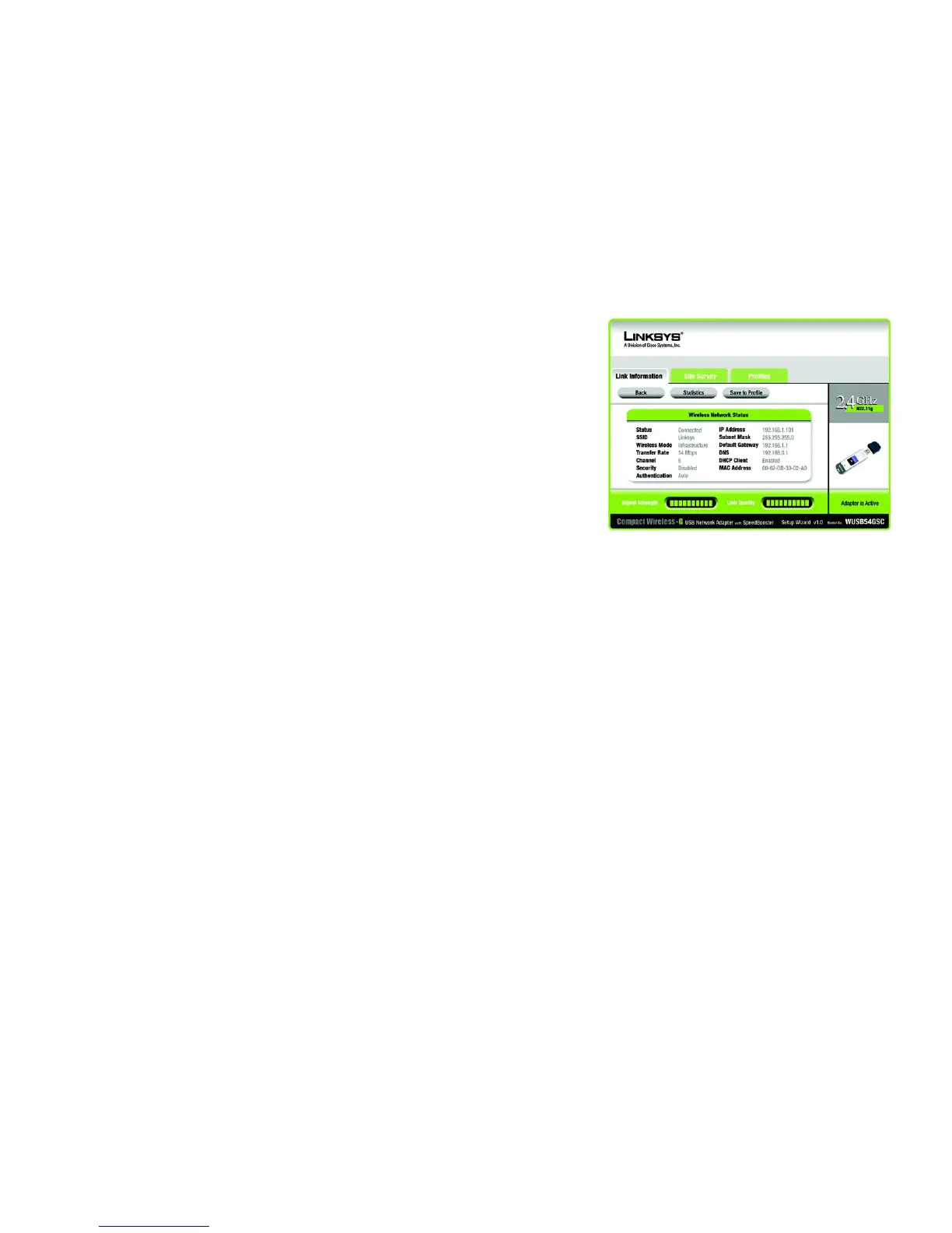 Link Quality - The Link Quality bar indicates the quality of the wireless network connection.