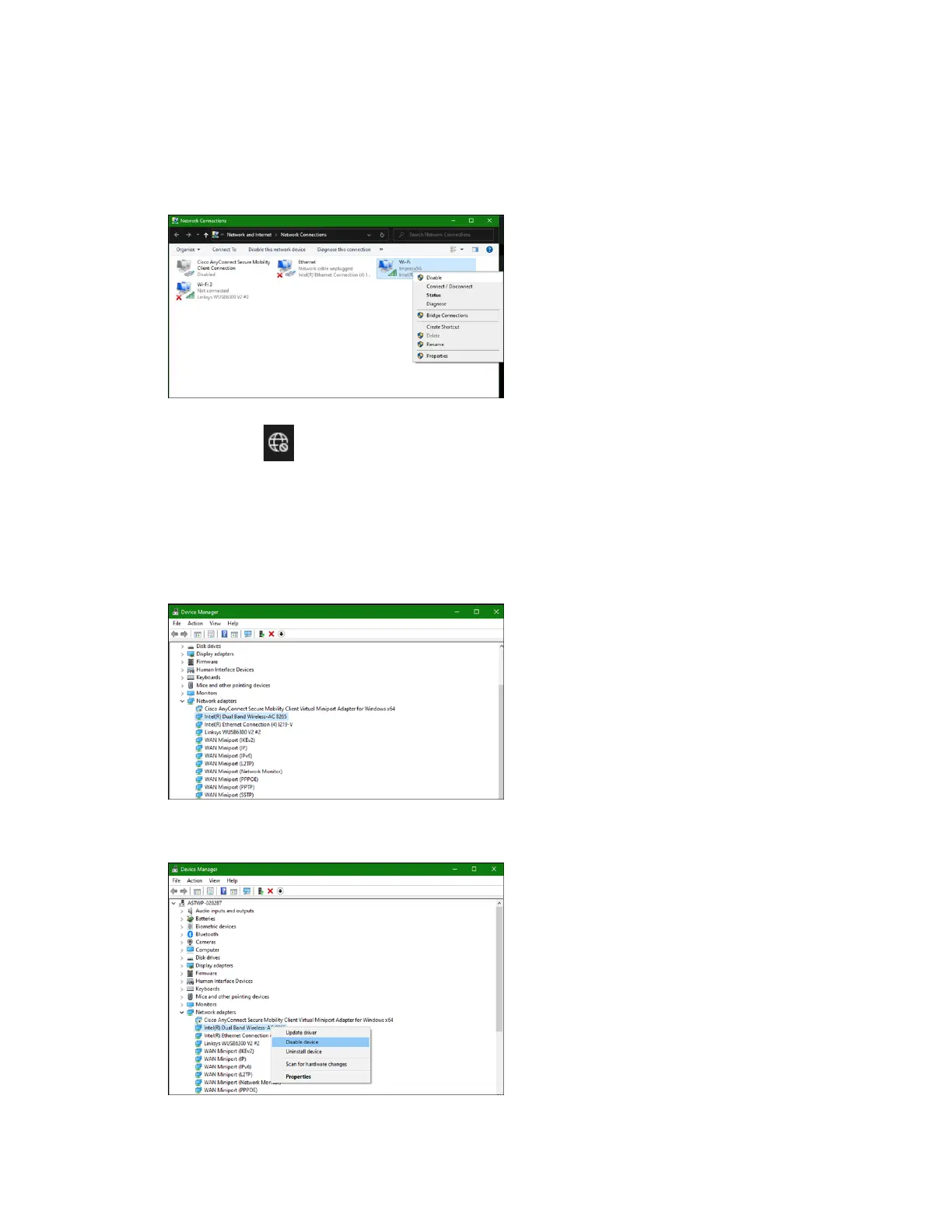 réseau) et cliquez sur Disable device (Désactiver l’appareil).