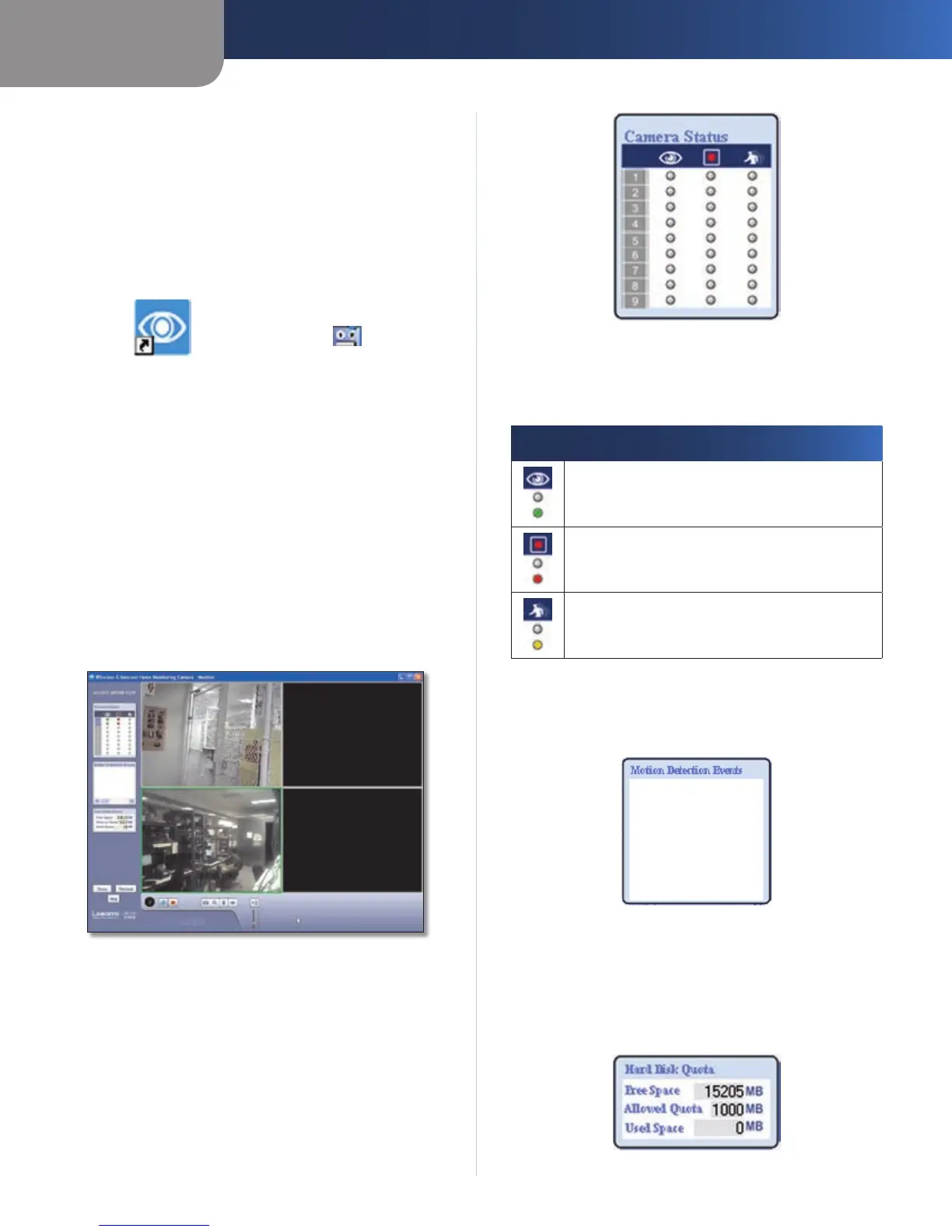 Camera Status, Motion Detection Events, Hard Disk Quota,