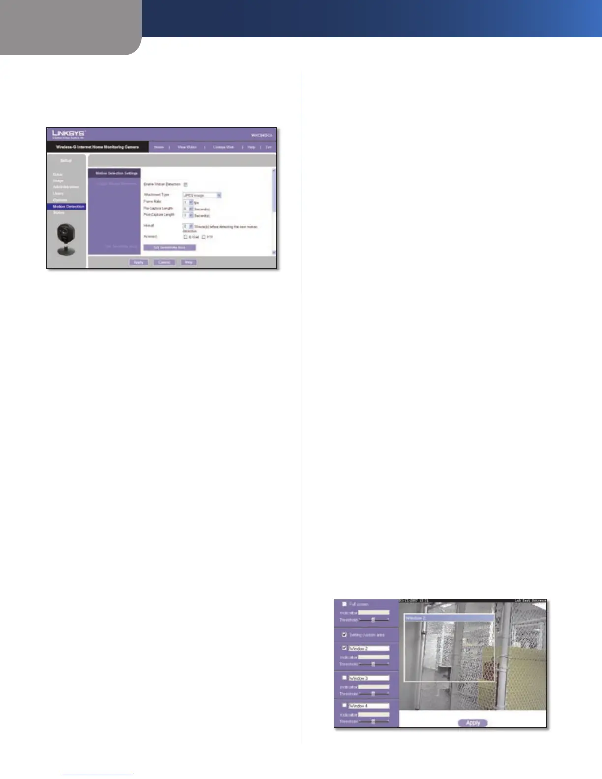 The Setup > Motion Detection screen allows you to