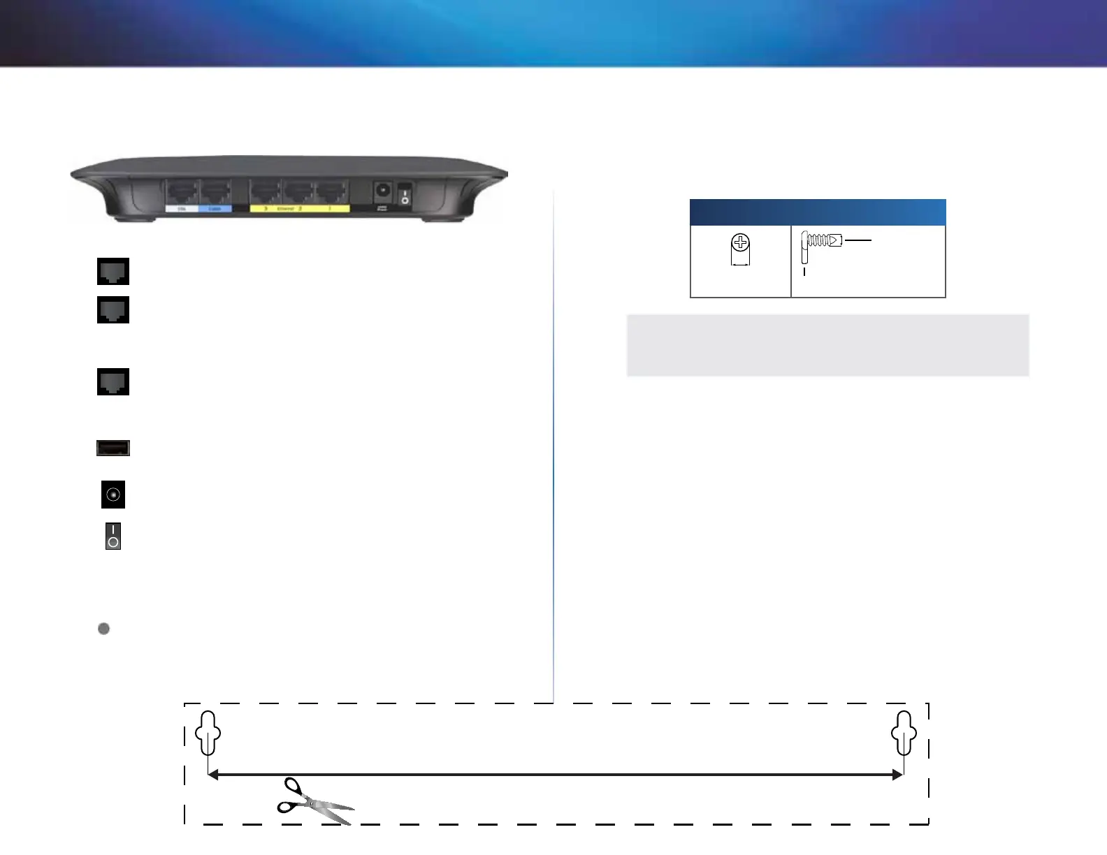 Het onderpaneel van de router beschikt over twee sleuven voor wandmontage.