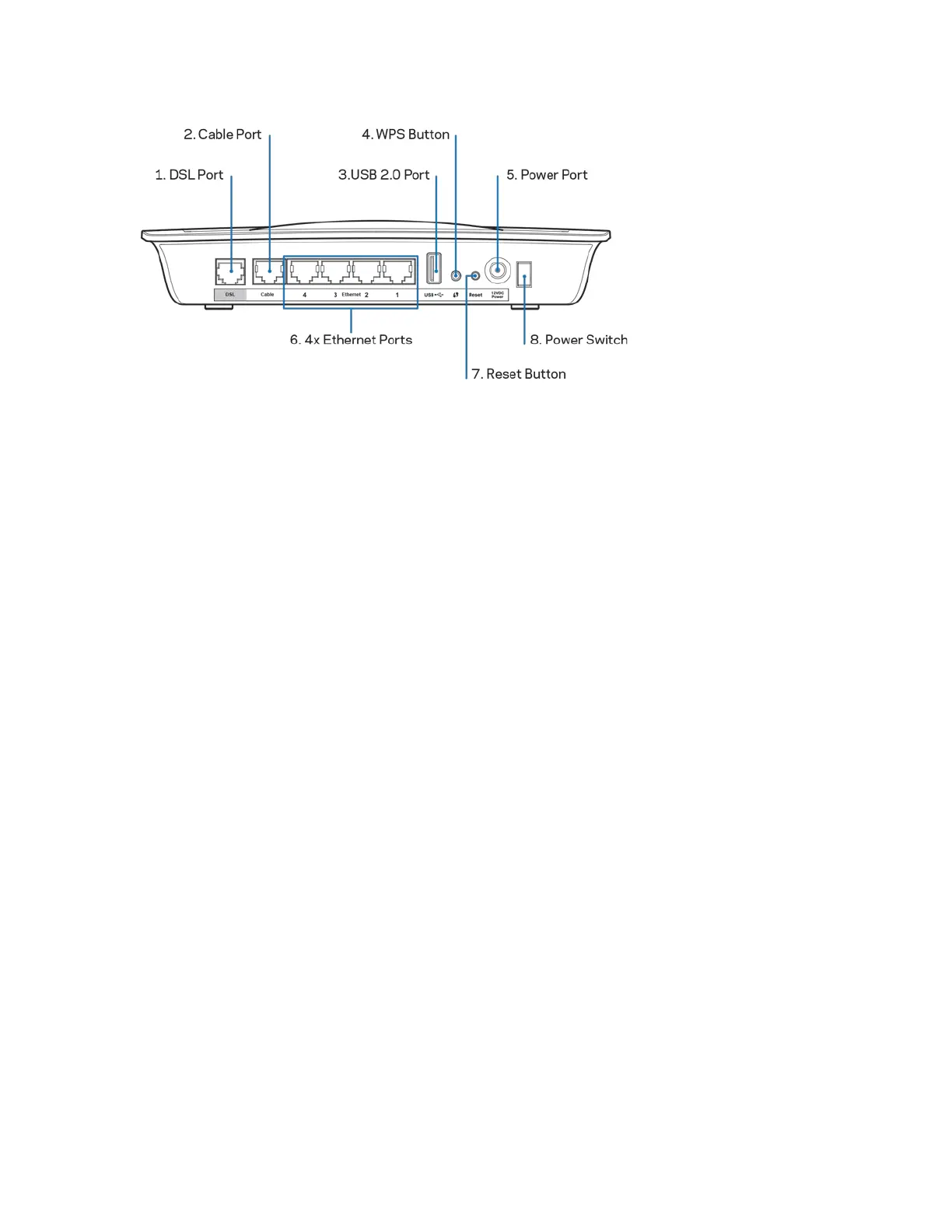 USB 2.0 port------Connect and share a USB drive on your network or on the Internet.