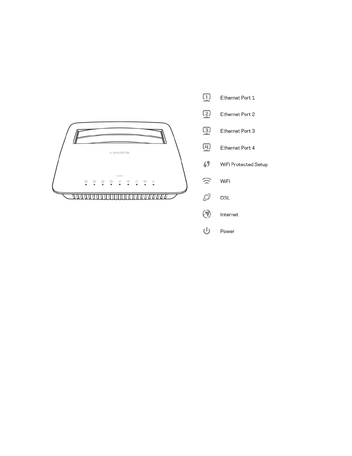 DSL līniju. Izgaismojas zilā krāsā, kad modems-maršrutētājs ir iestatīts tikai maršrutētāja