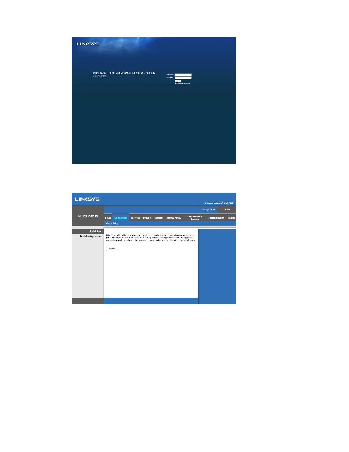 Siden for nettbasert oppsett på modemruteren vises da. Klikk på Hurtigstart-