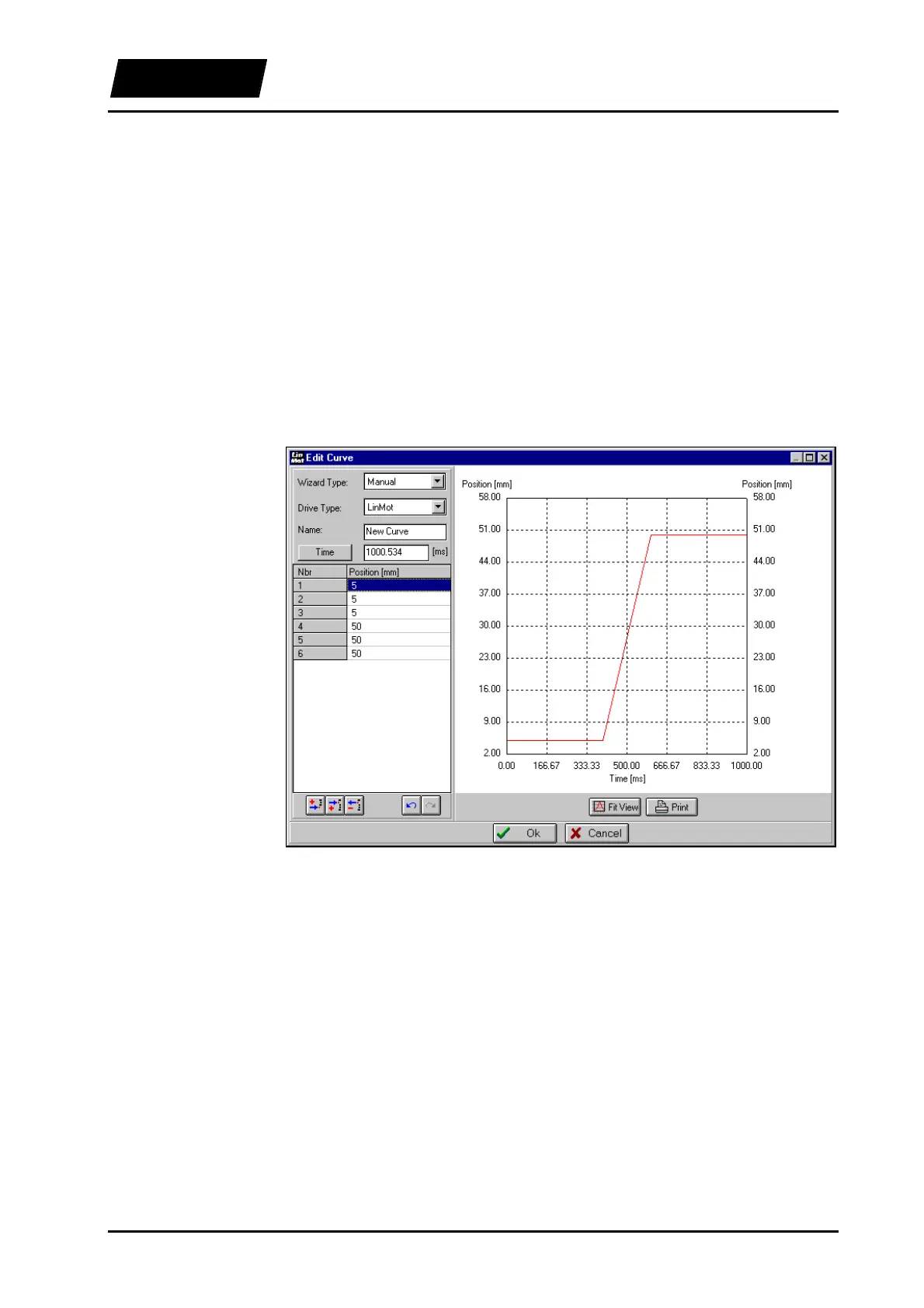 “LinMot”. Under “Wizard Type” we select “Manual” and we enter 1000 ms for “Time”.
