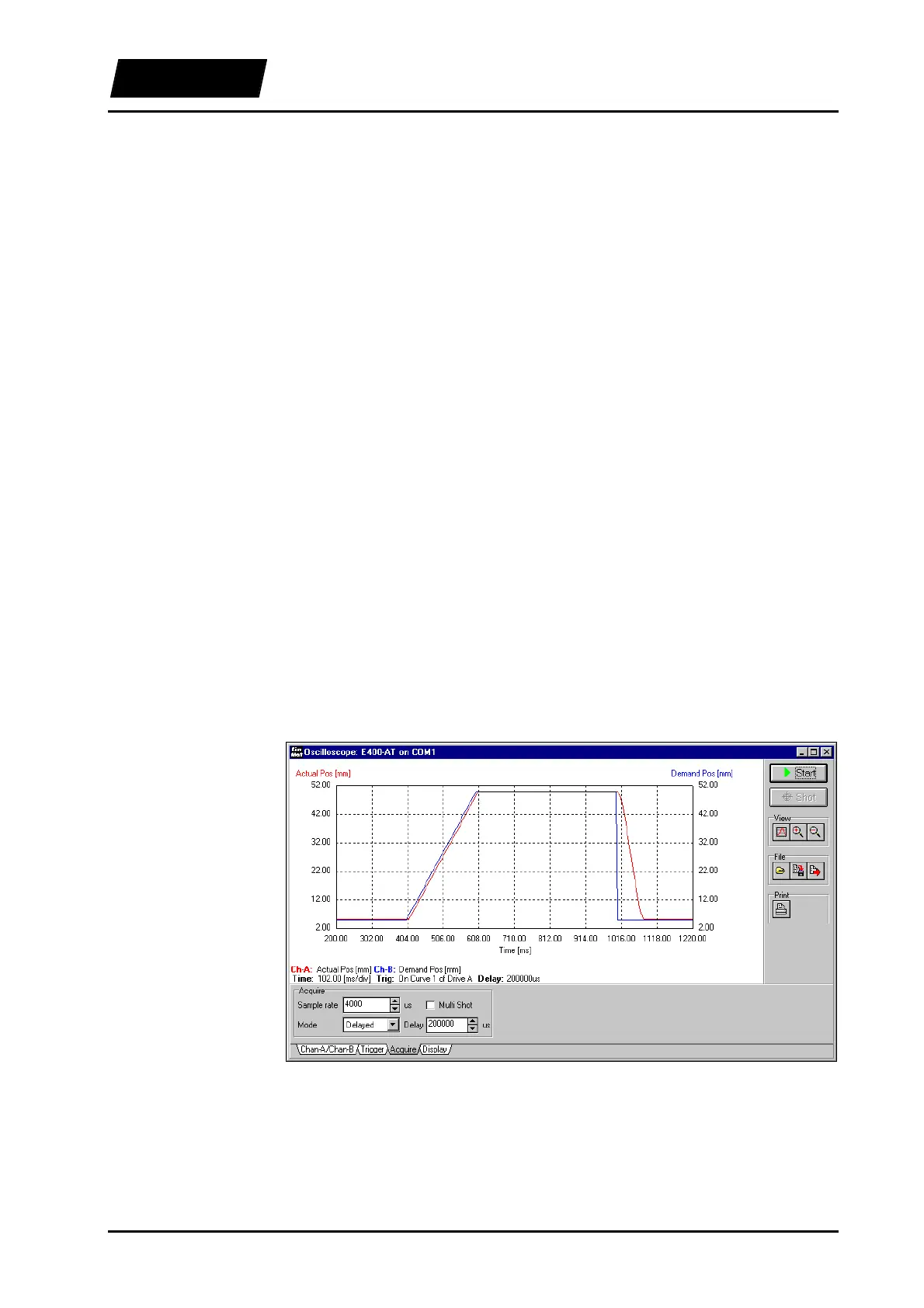 graph windows. “Actual Pos”, ”Drive A” should be selected for channel A, while