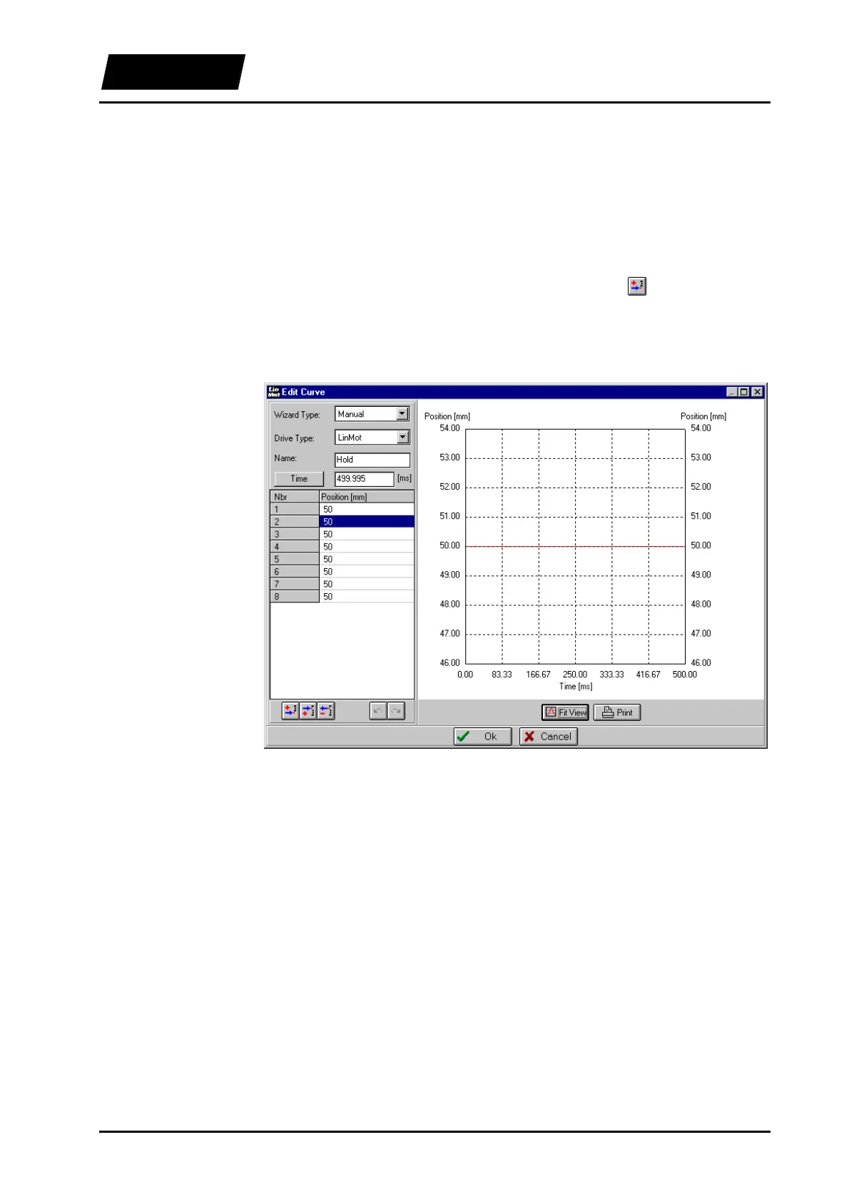the position at 50 mm during half a second. We open a new curve by clicking on the