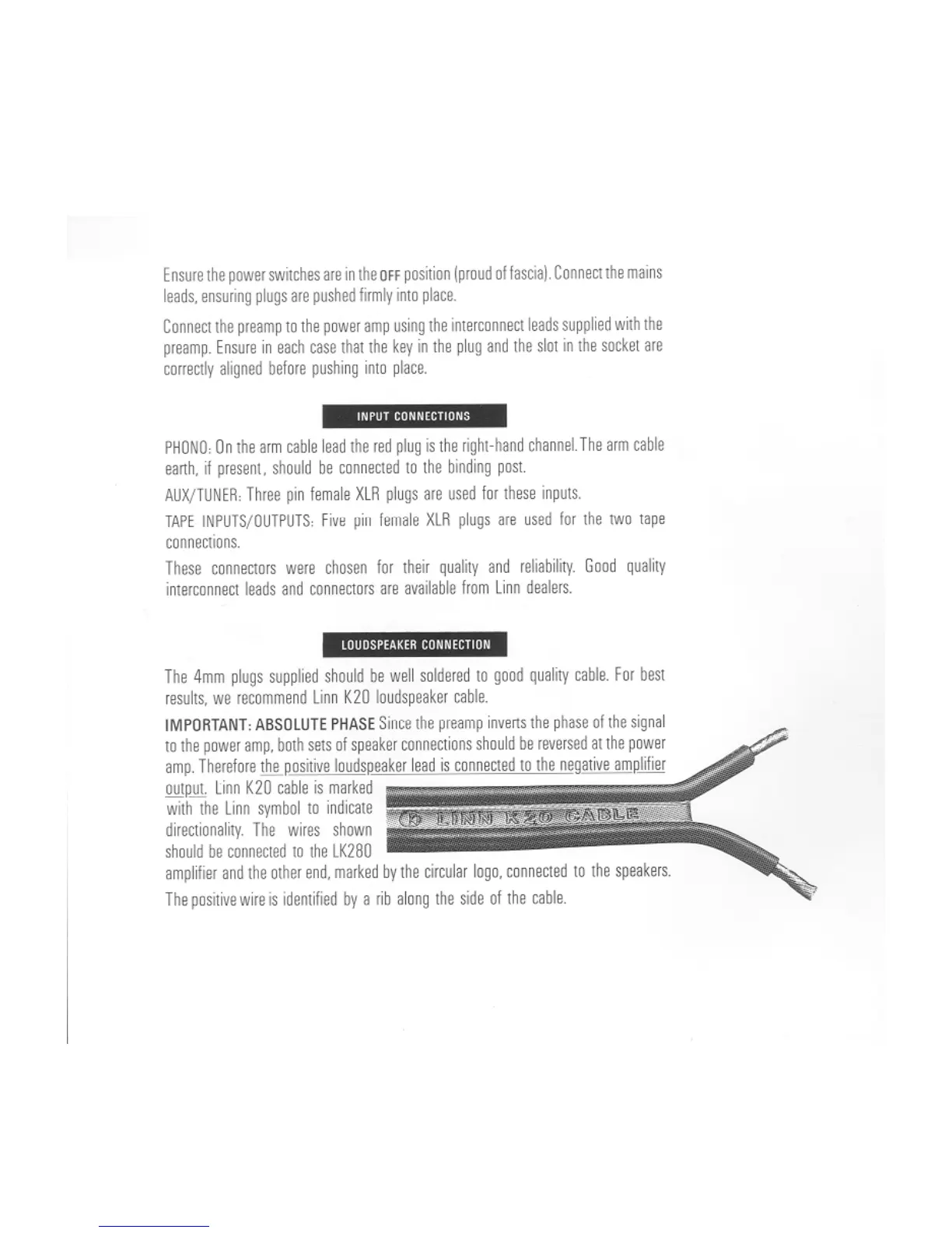 Linn LK1 - Connections and Setup; Input Connections; Loudspeaker Connection