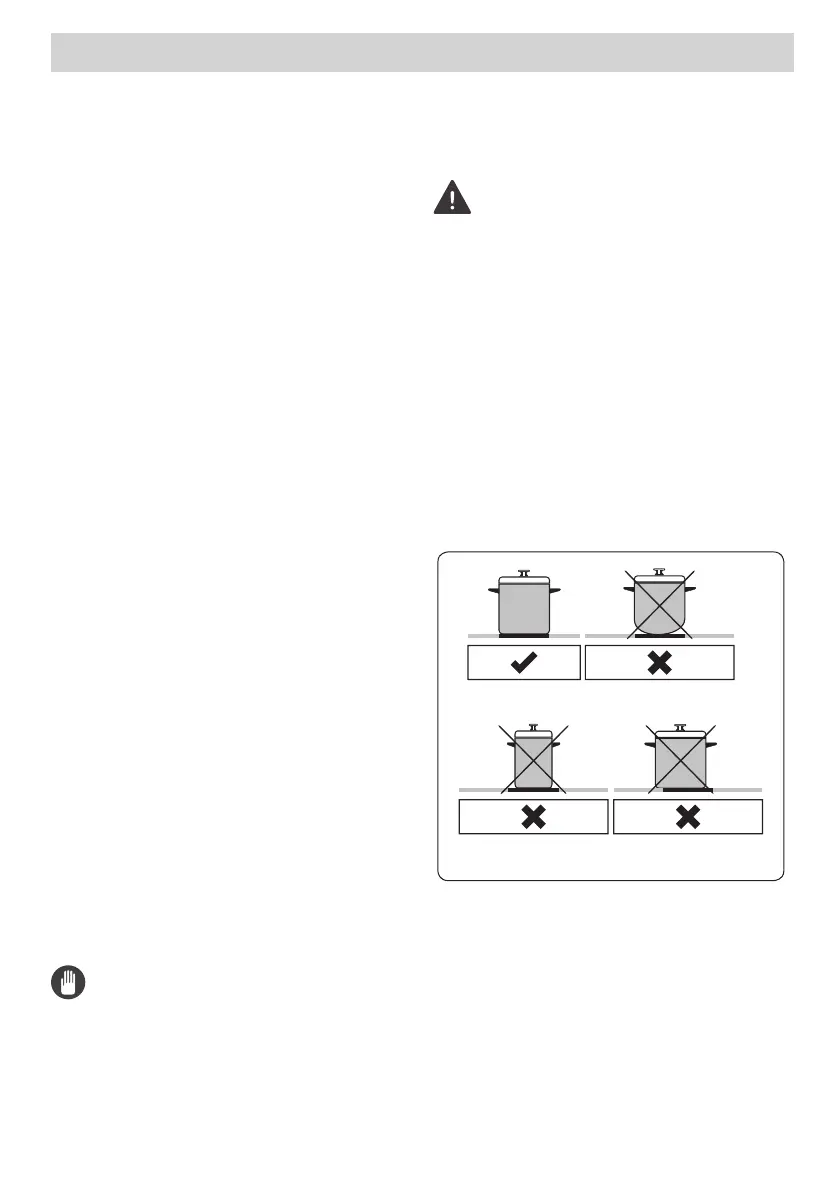 • Never operate the hob without pans