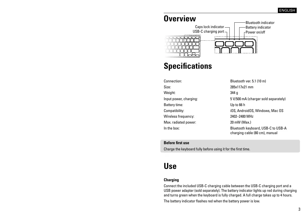 Charge the keyboard fully before using it for the rst time.