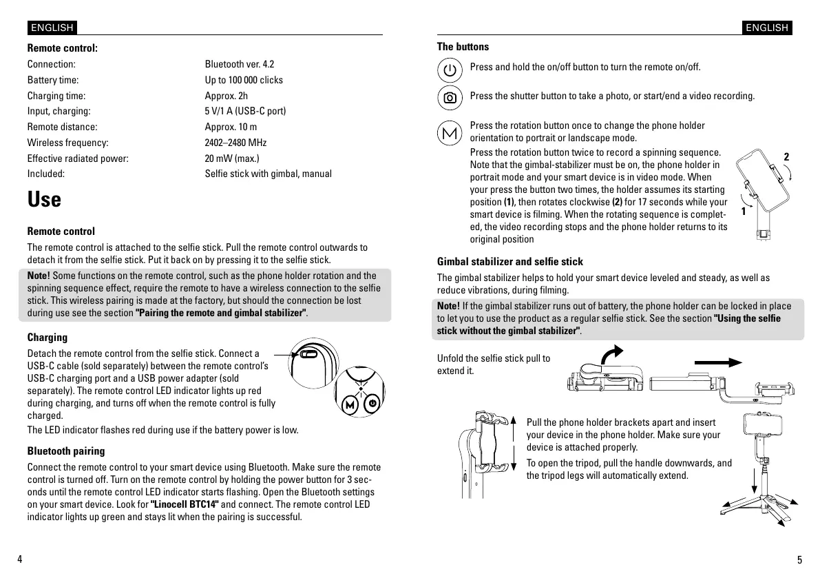 during use see the section "Pairing the remote and gimbal stabilizer".