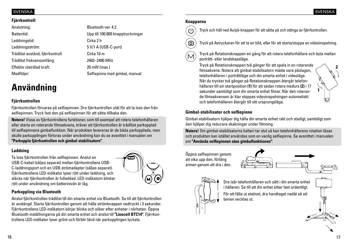 till selepinnens gimbalfunktion. När produkten levereras är de båda parkopplade, men