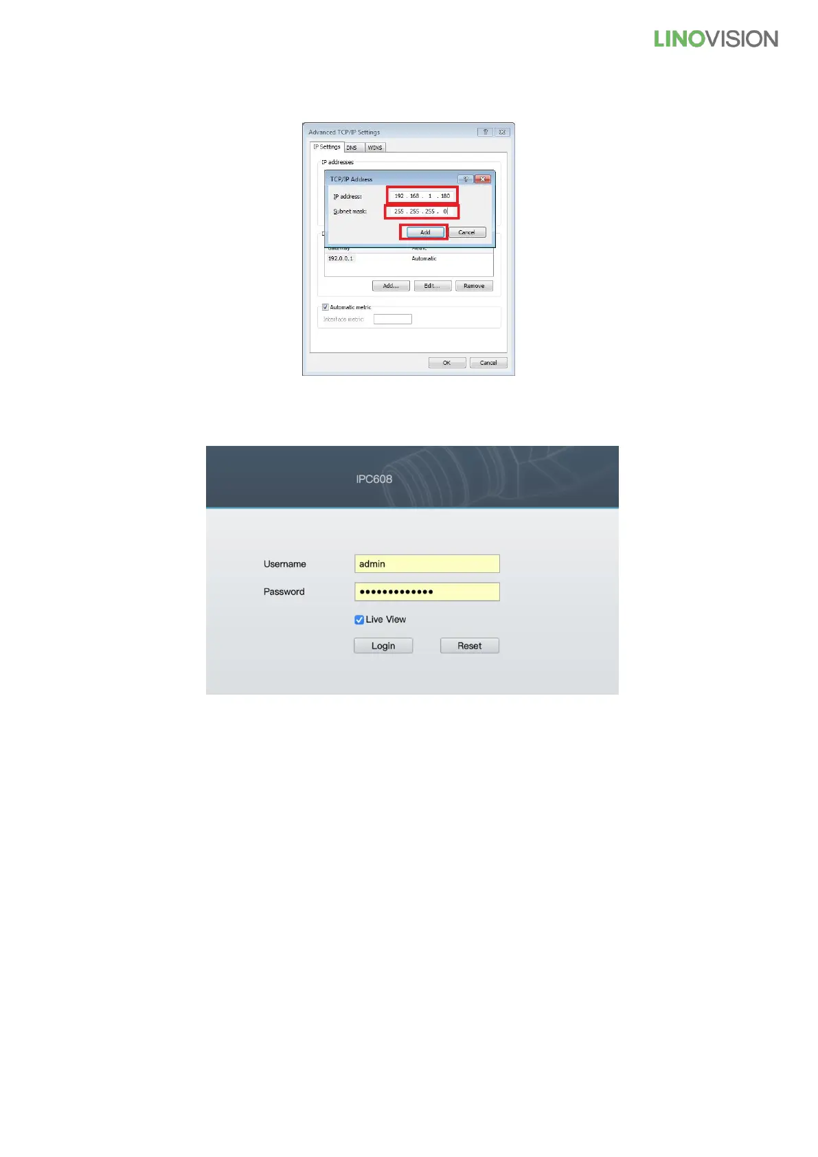 9) Enter the IP address “192.168.1.xxx(0-255)” and the subnet mask will appear when you click the blank area,