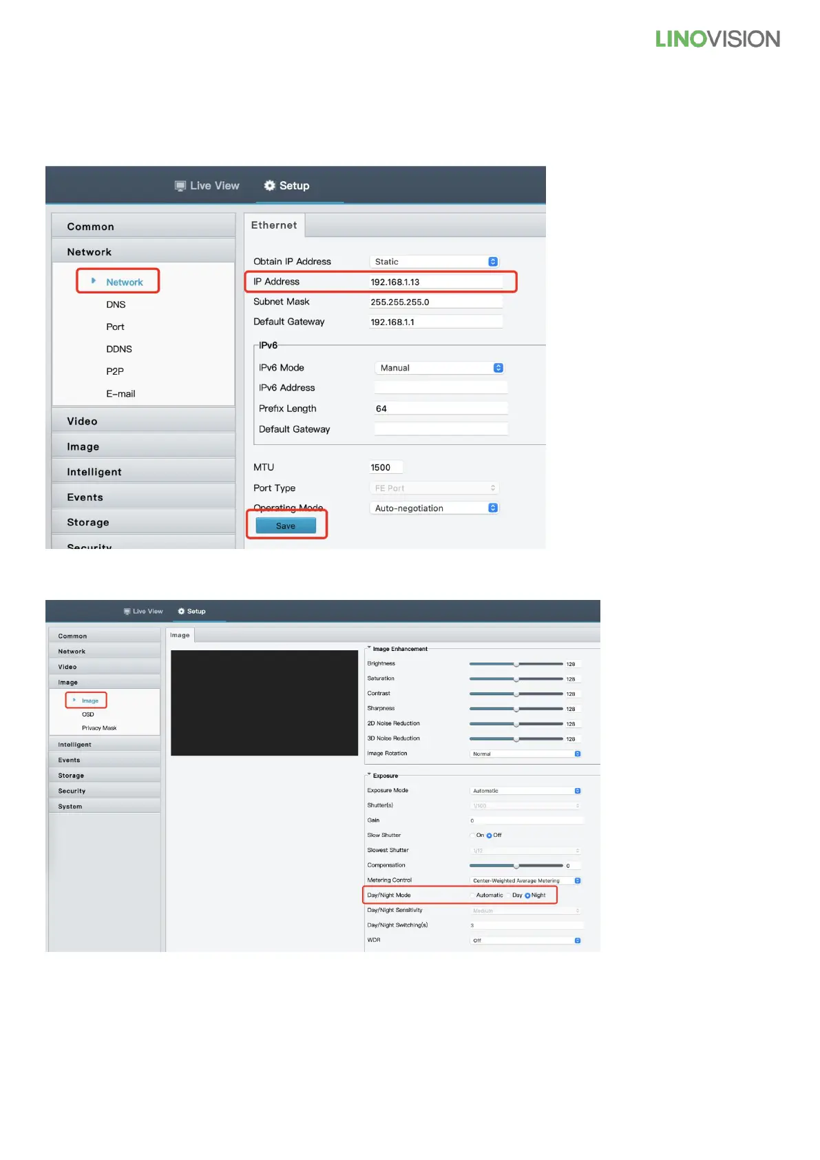 Open the LED light: When the environment is dark, click the “Image” and switch to “Night” mode in Day/Night