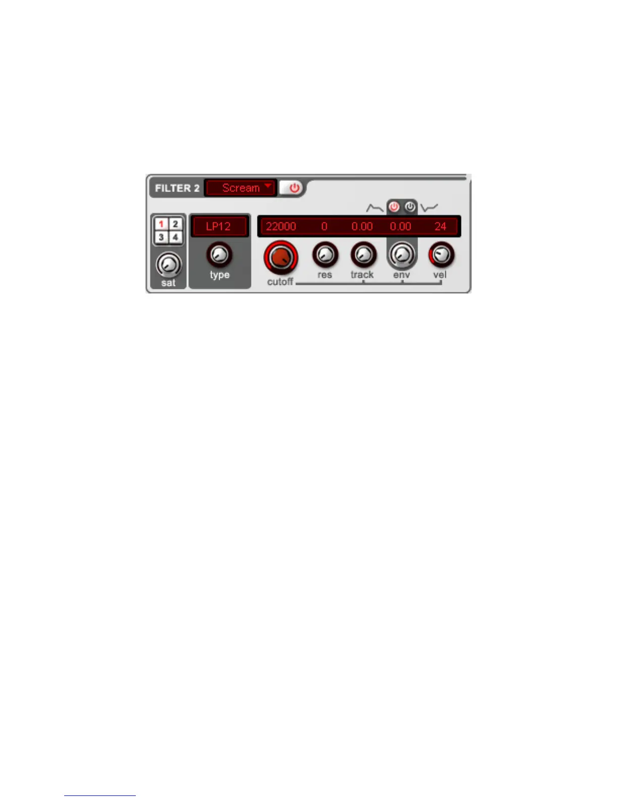 Das Scream Filter beinhaltet folgende Parameter: Cutoff, Res