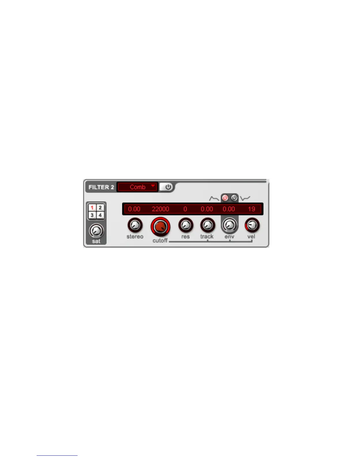 Das Comb Filter beinhaltet folgende Parameter: Stereo, Cutoff, Res
