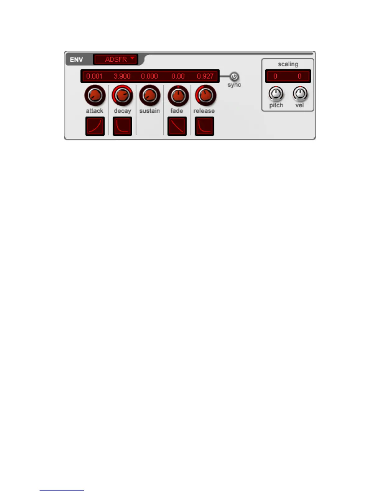 und Release, Pitch-Scaling, Velocity-Scaling und Sync. Darüber hinaus