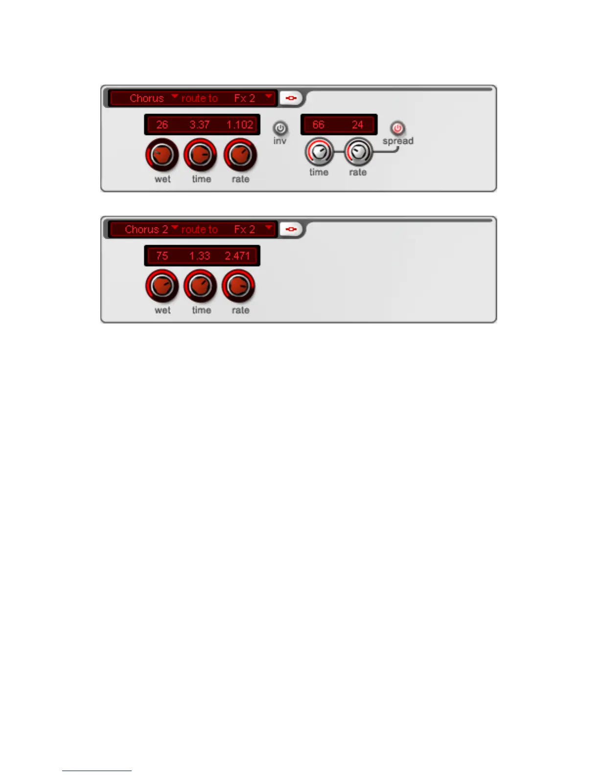 verzögerten Signalen. Die Parameter des Chorus umfassen „Wet, „Time”,