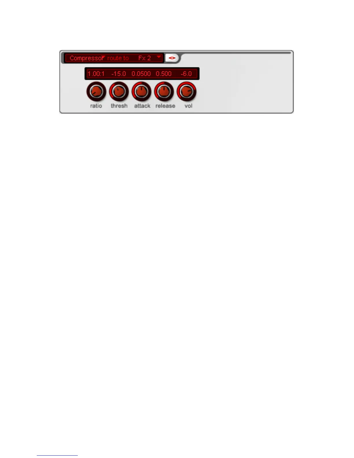 Parameter: Ratio, Threshold, Attack, Release und Vol (“Volume”).
