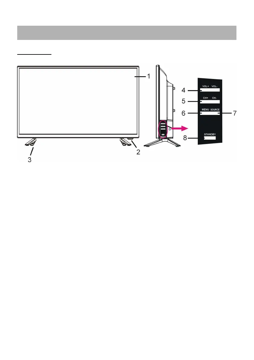 2. Remote control sensor / Power indicator- In standby mode the indicator light will display red